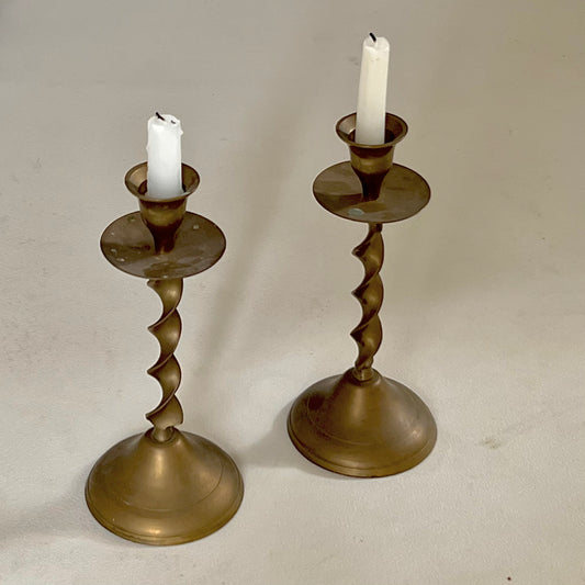 - Set of Four Antique Brass Candle Holders