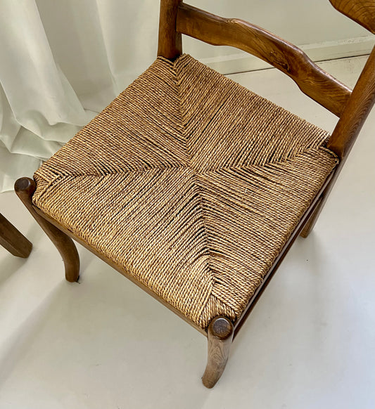 - Set of Eight Oak & Cord Dining Chairs