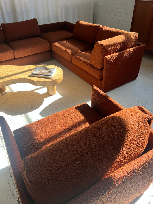 - Restored Bespoke Rust Boucle Modular Sofa and Armchair Set