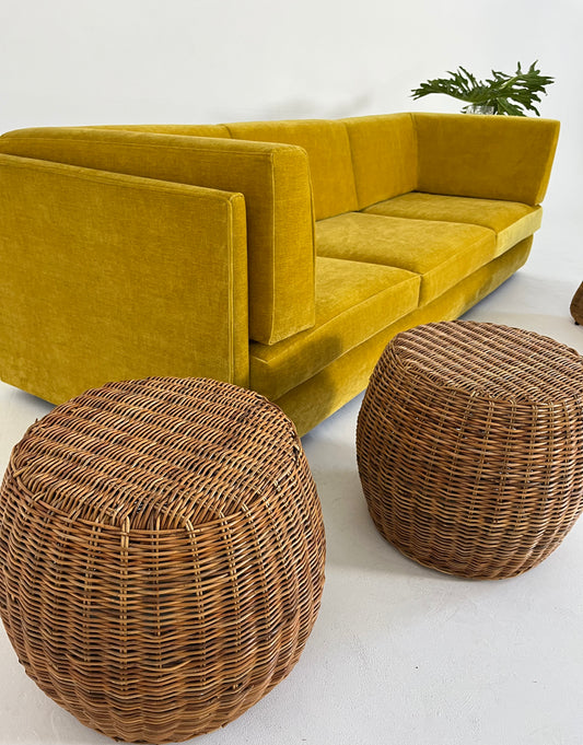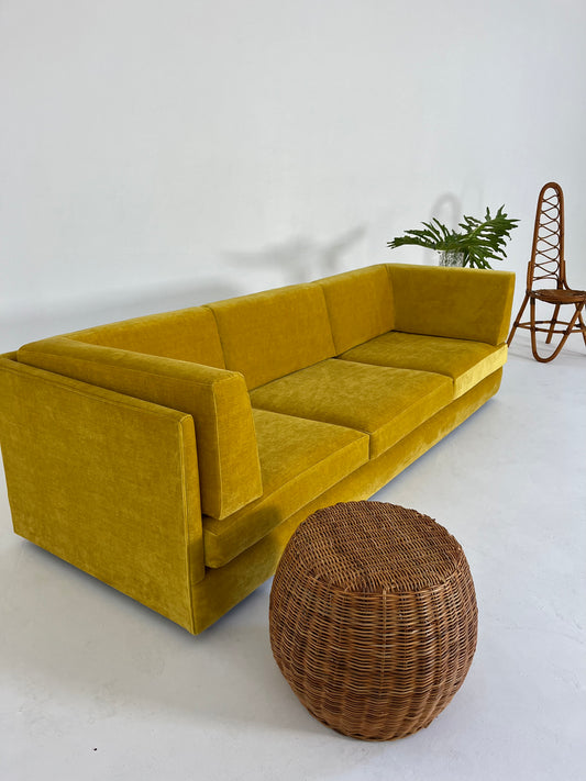 - Vintage Custom Velvet Sofa in Sunshine - Fully Refurbished