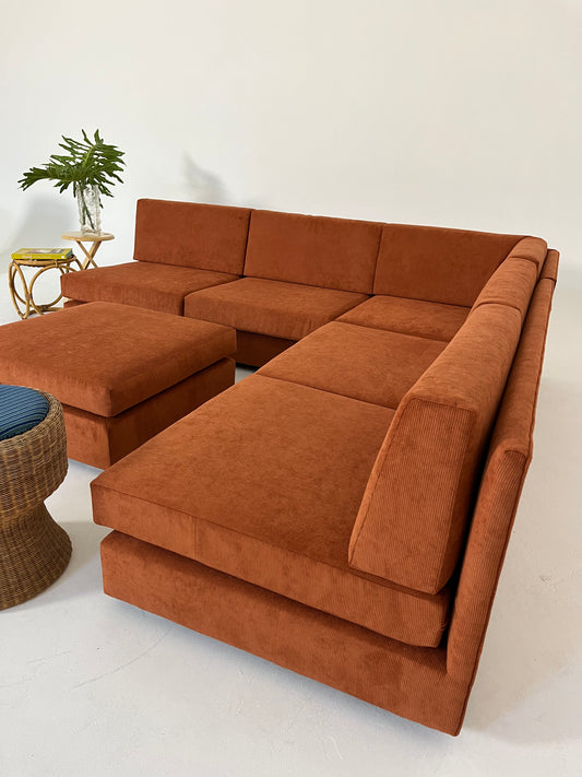 - Bespoke Large Caramel Corduroy Modular Sofa Set