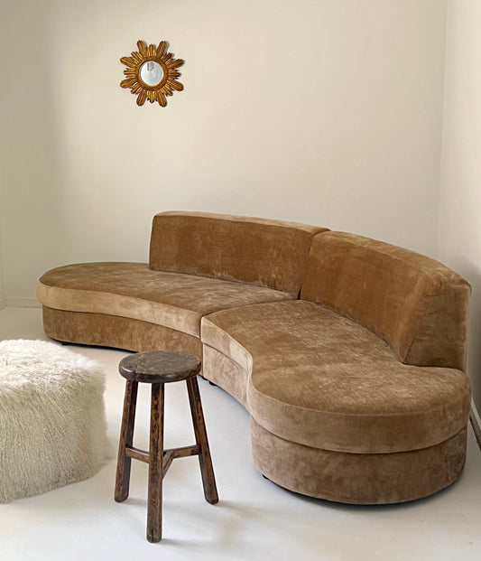 Vintage Curved Sofa in Caramel Velvet - Fully Refurbished