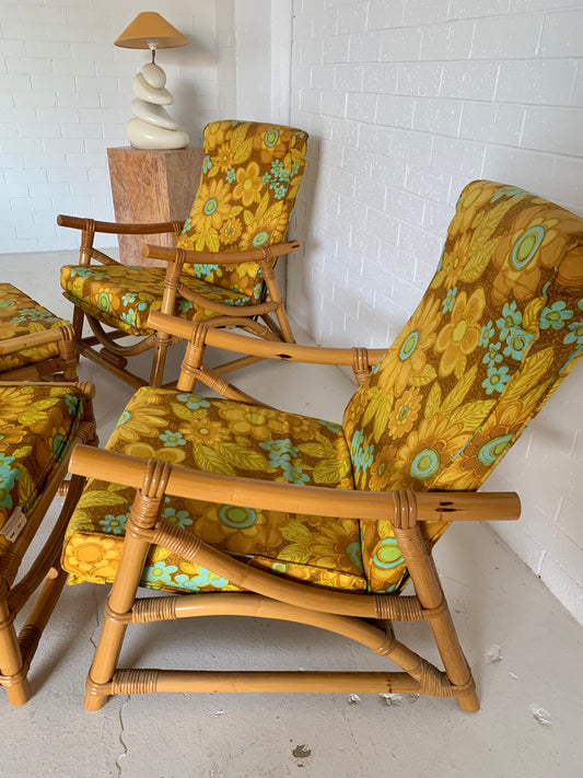 Bamboo Reclining Armchair and Foot Stool - Two Available