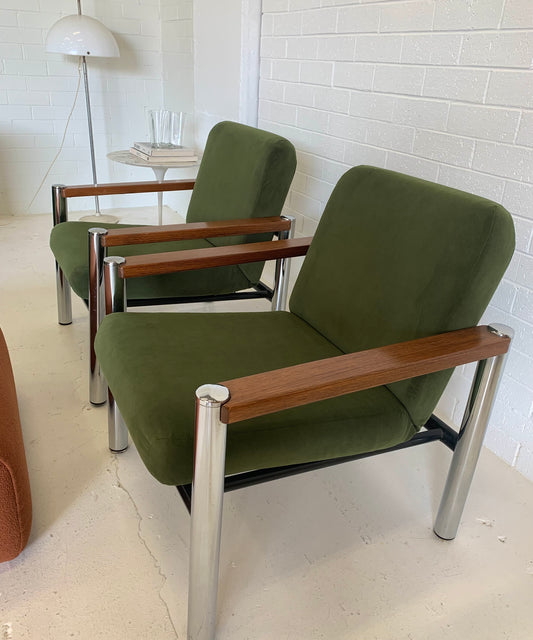 Vintage Teak and Chrome Sebel Armchairs