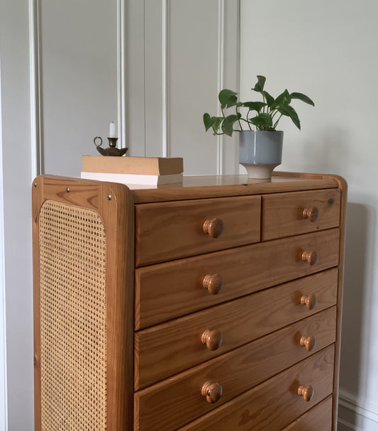 Rattan and Pine Tallboy Drawers