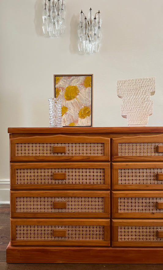 Solid Timber Sideboard / Drawers With Rattan Inserts