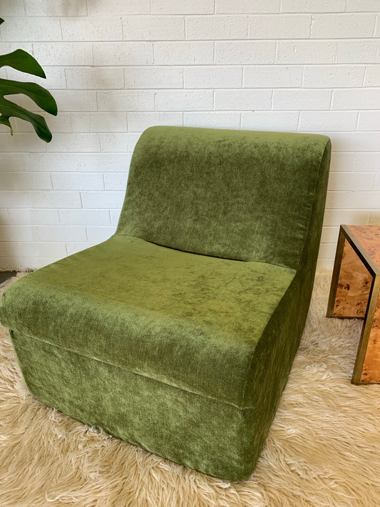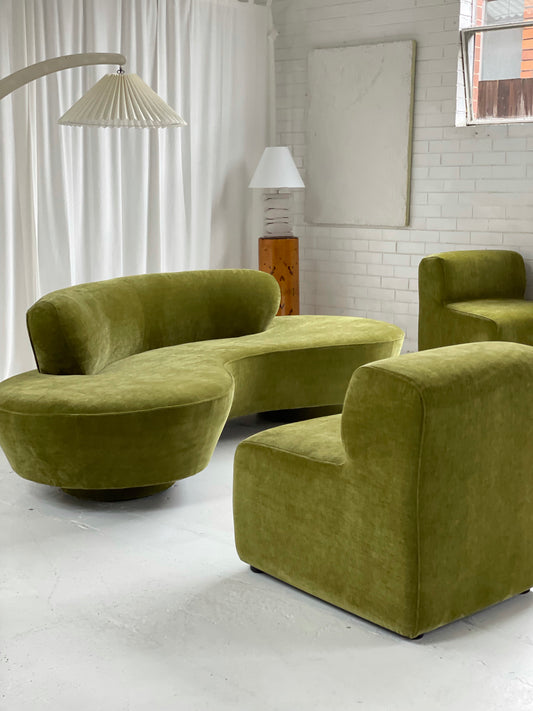 Olive Green Curved Velvet Sofa