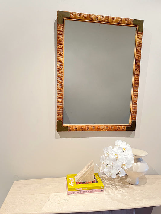 Cane & brass mirror