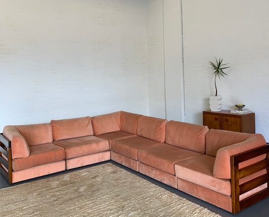 Vintage Modular Sofa in Peach Velvet Corduroy