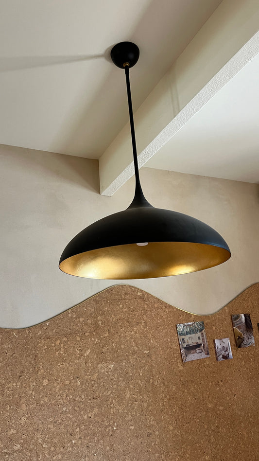 Agnes Large Pendant in Matte Black with Gild Interior - Two Available