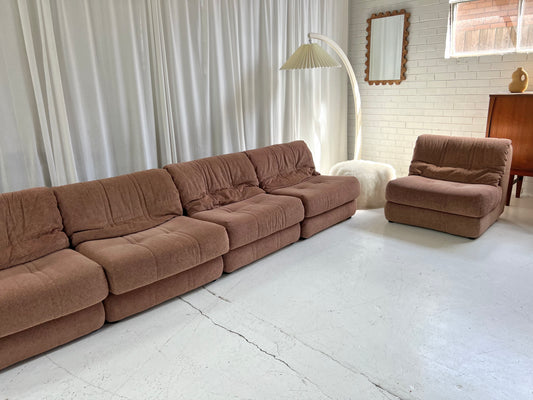 Vintage Dusty Pink Chenille Modular Sofa