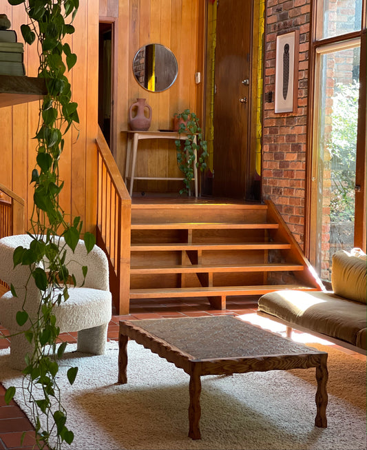 Wavy Timber Coffee Table With Tiled Top