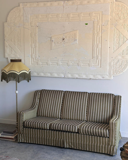 Vintage Green Velvet Stripe Sofa + Armchairs - Box Pleat Skirt