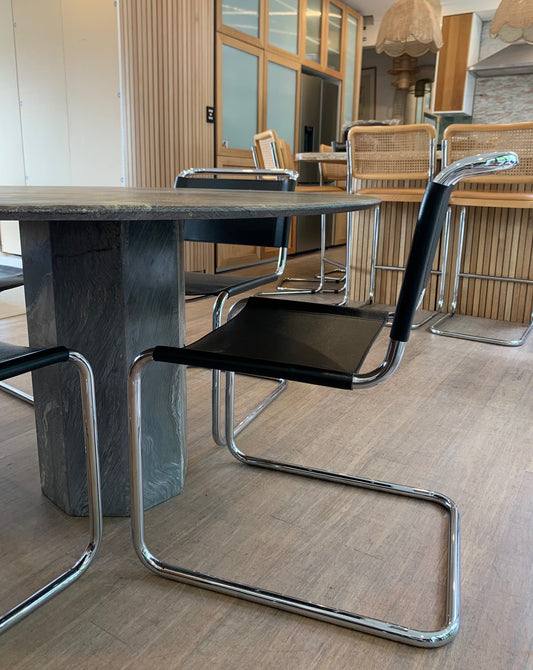 Vintage Black Leather Italian-Made Spoleto Bespoke Dining Chairs