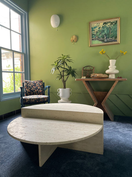 Split Level Half Moon Travertine Table
