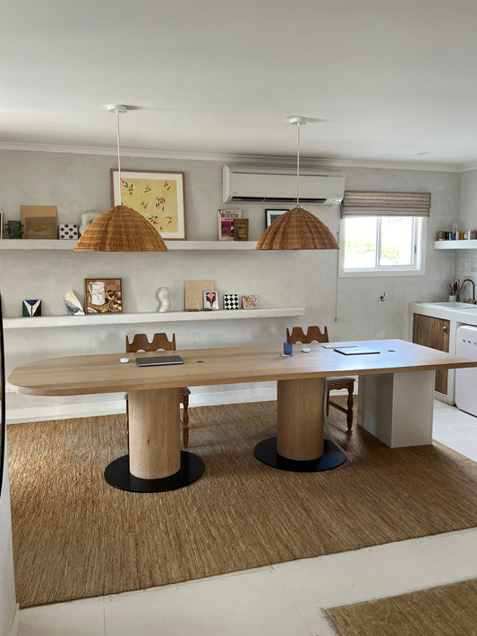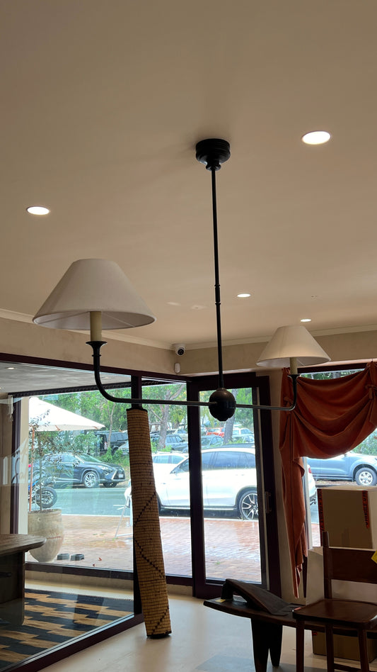 Piaf Large Linear Pendant in Aged Iron & Ebonized Oak