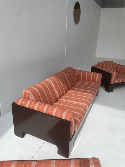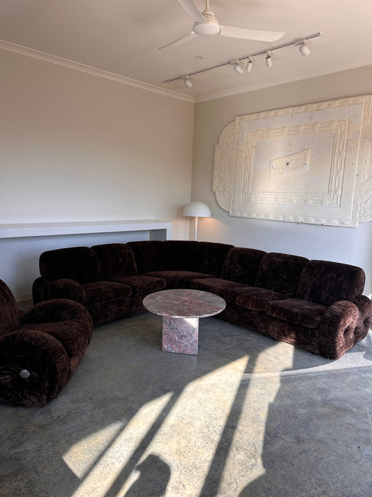 Italian Mid Century Vintage Chocolate Velvet Lounge Suite + Armchair