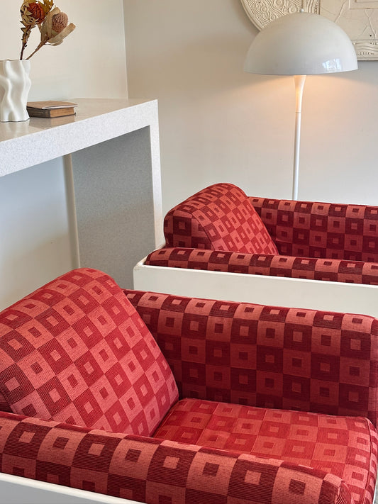 Vintage Chunky 70's Lounge Suite - Graphic Pink / Red Check Fabric