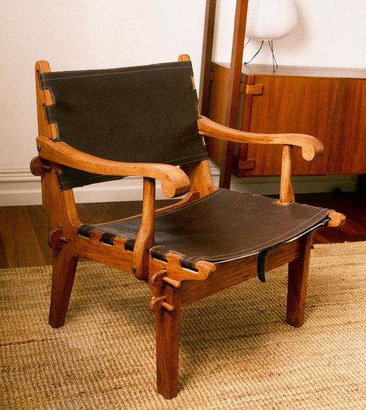 Pair of Angel I. Pazmino Rosewood and Leather Safari Chairs