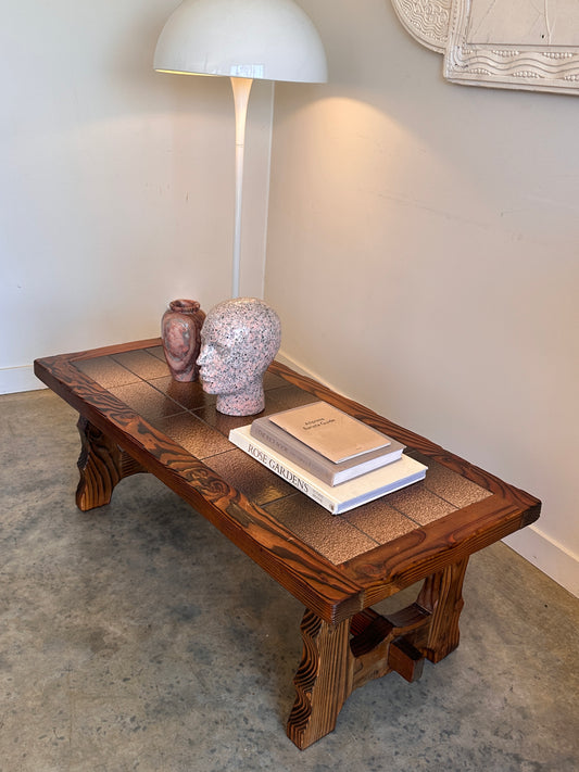 Vintage Retro Tile & Cedar Coffee Table - Spanish Revival