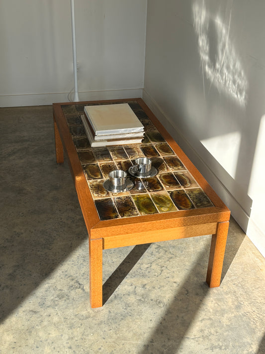 Vintage Mid-Century Green Tile & Timber Coffee Table