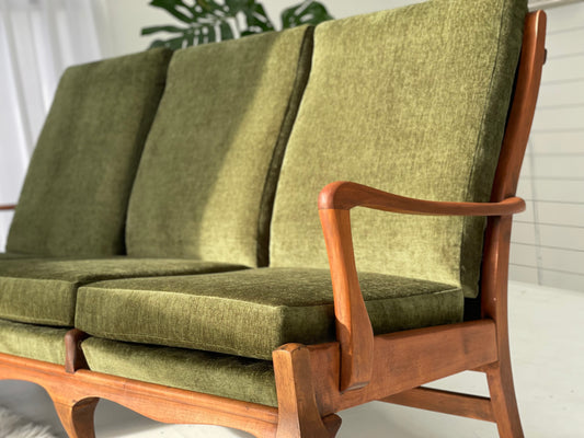 Restored Vintage Green Three-Seater Sofa & Armchairs