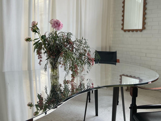 Large Custom Curved Mirrored Table
