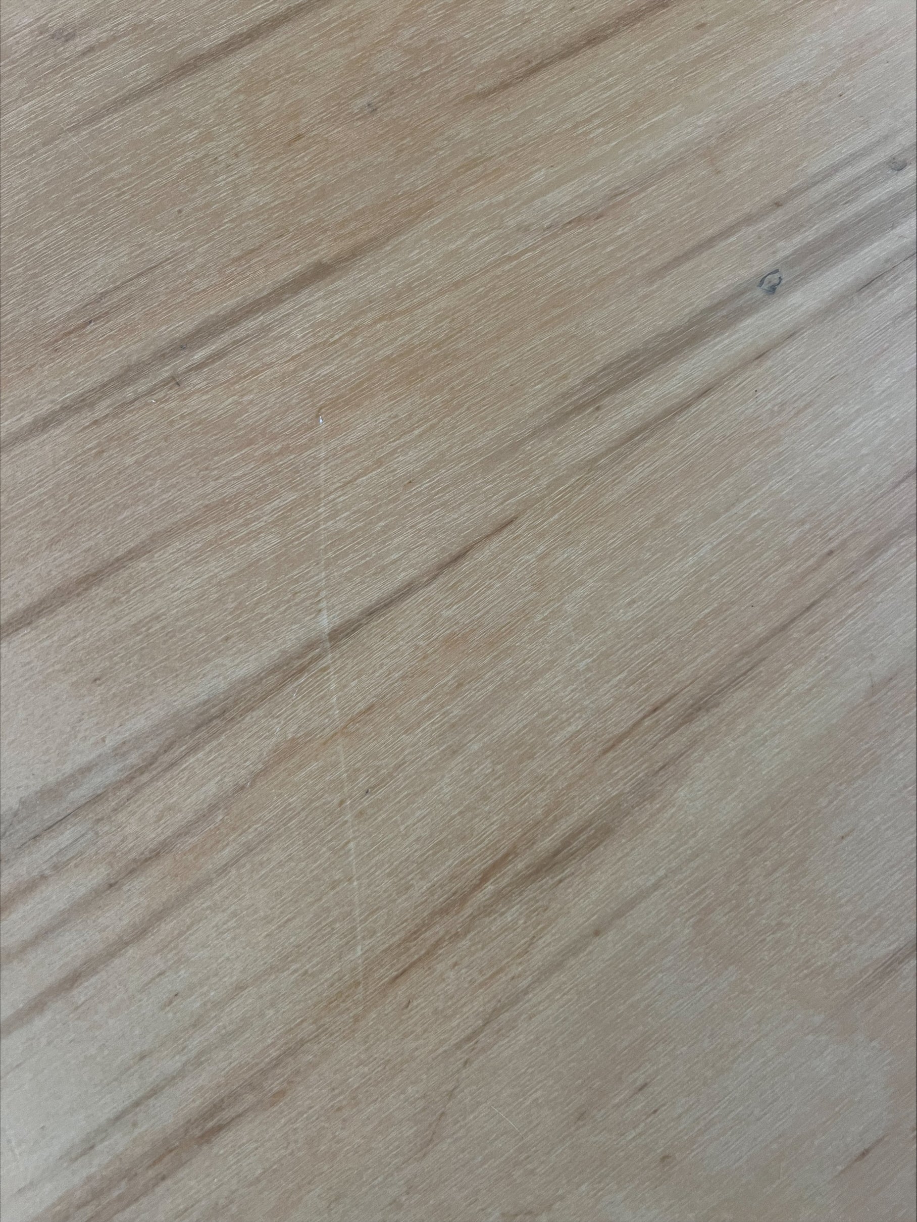 Table is structurally in very good condition with no wobbles. Table top has some marks & scratches consistent with use & age. There are some small scratches and marks on the side edge of the table and the legs. The clear finish on the top of the table has some streaks and discolouration on surface. Please refer to the photos in the listing.