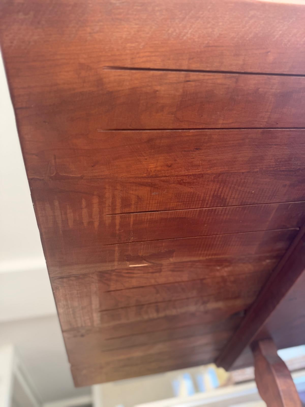 The images are a very accurate account of the table.It is in very good condition with very little wear and tear. There are a few minor scratches and the small bumps and dings show the age of the item which is part of its appeal and look.