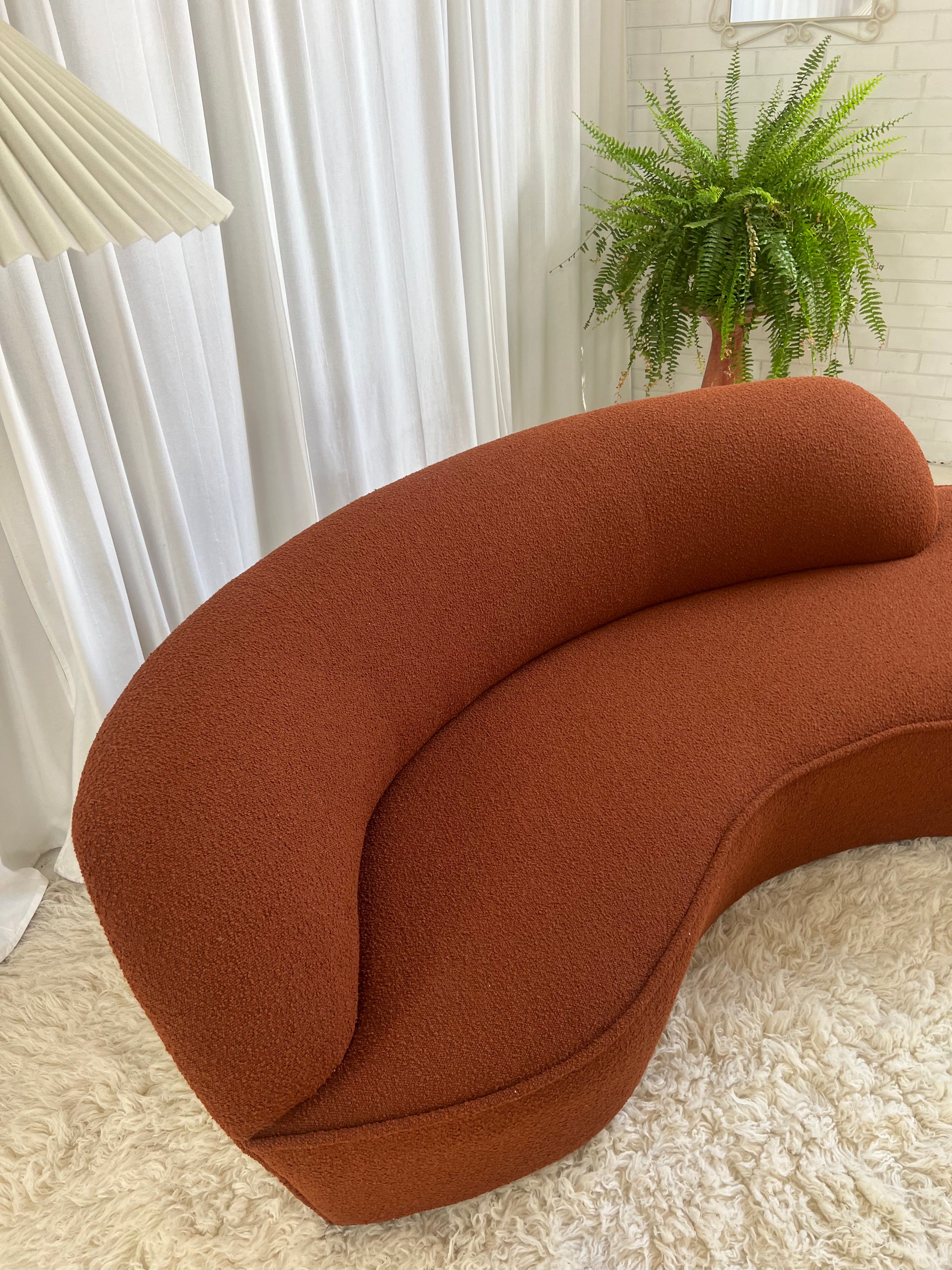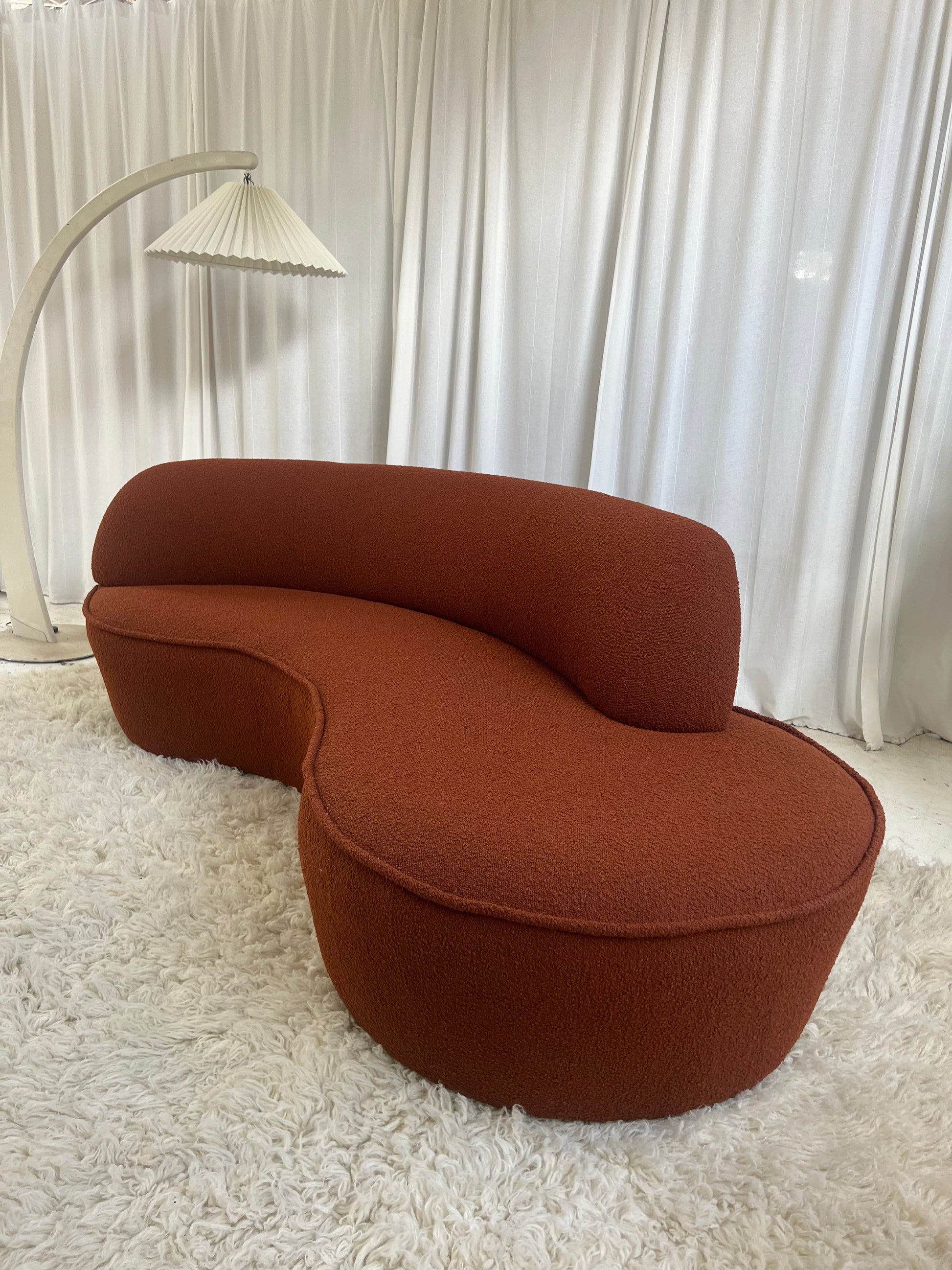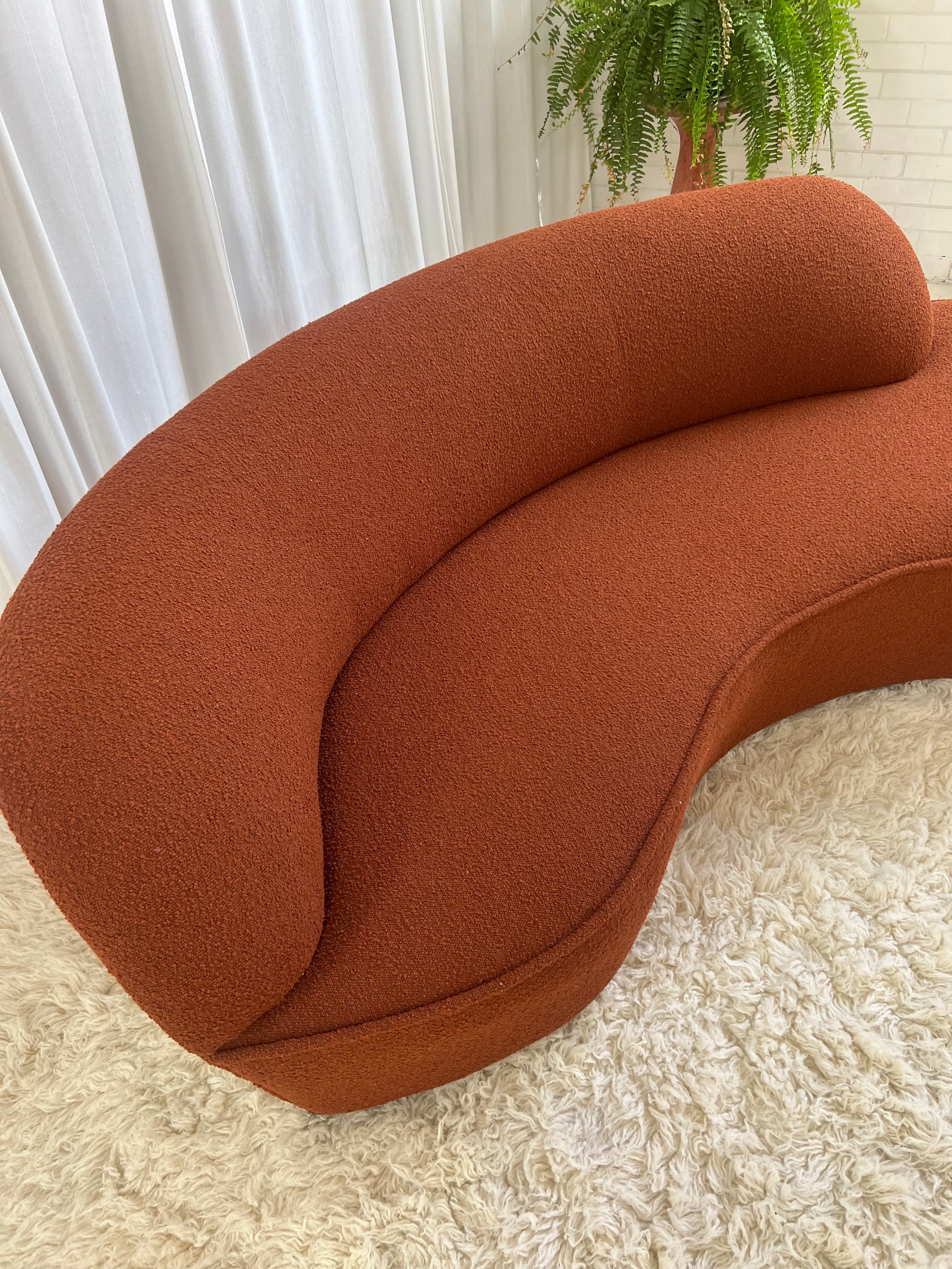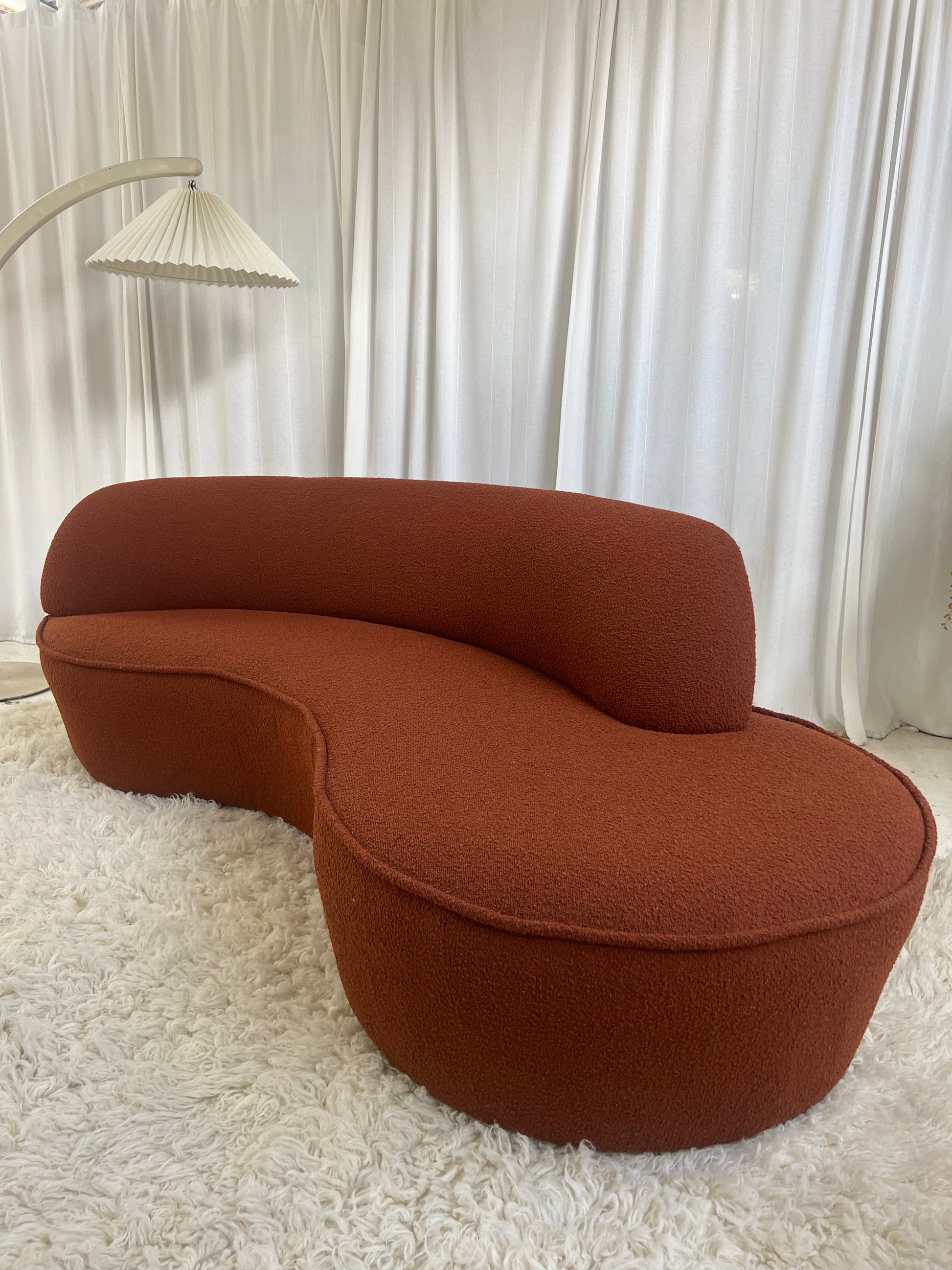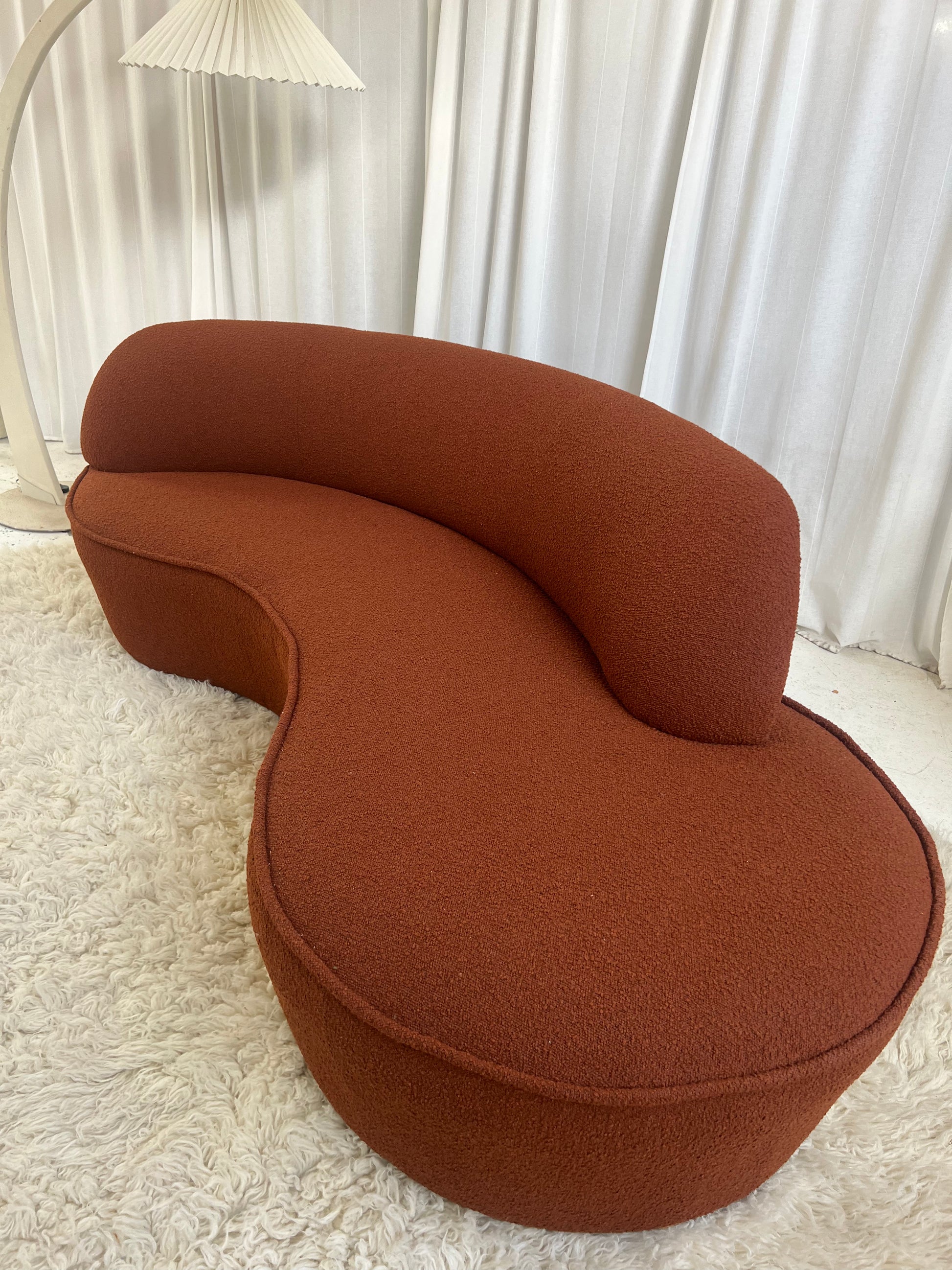 - Bespoke Rust Boucle Curved Sofa