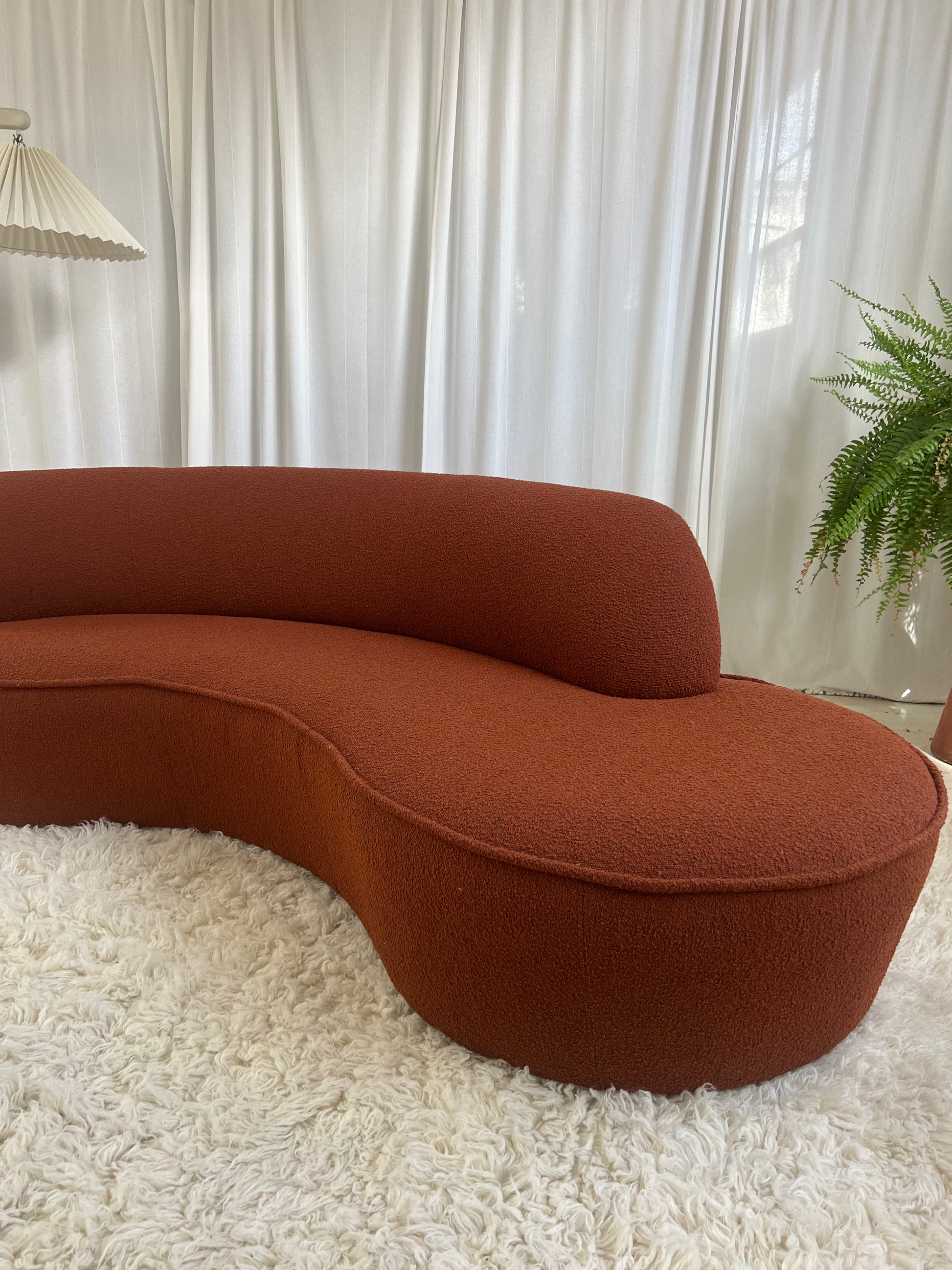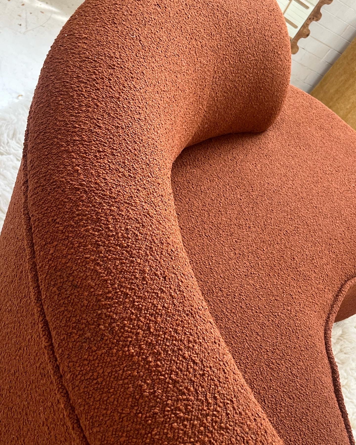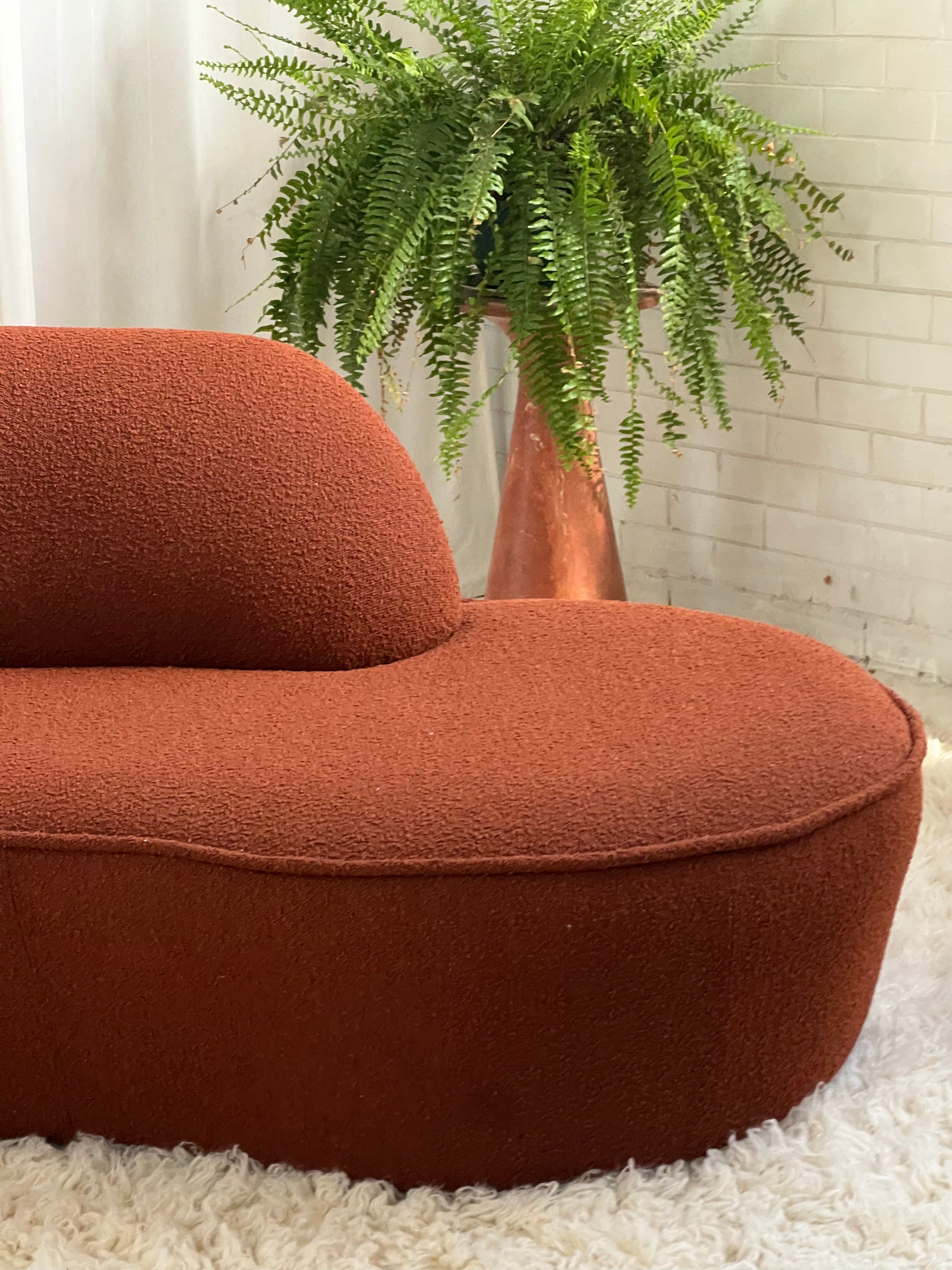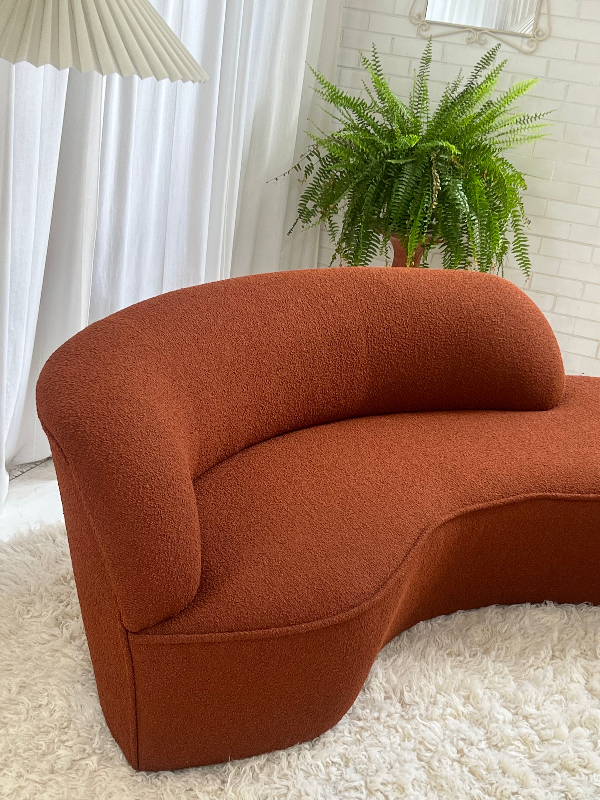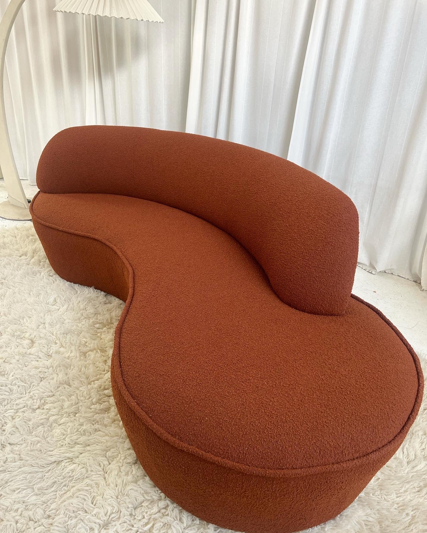 - Bespoke Rust Boucle Curved Sofa