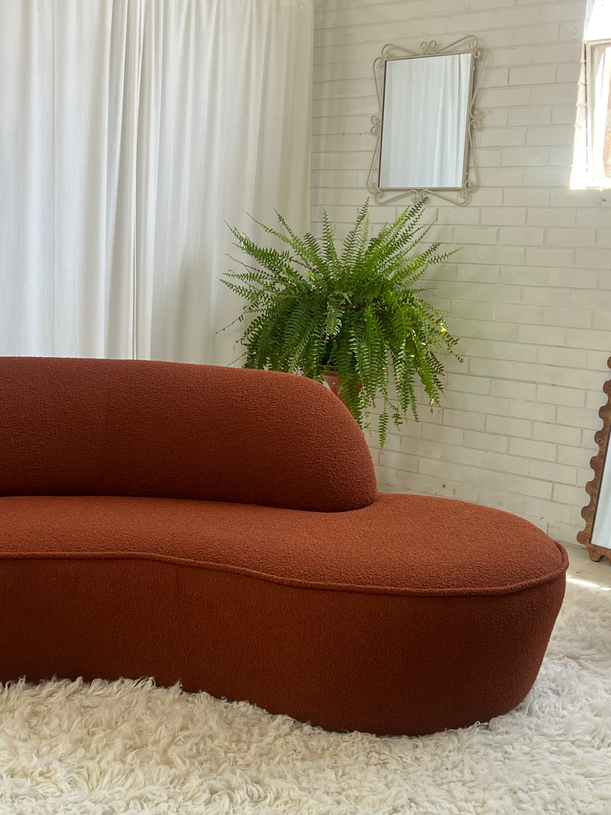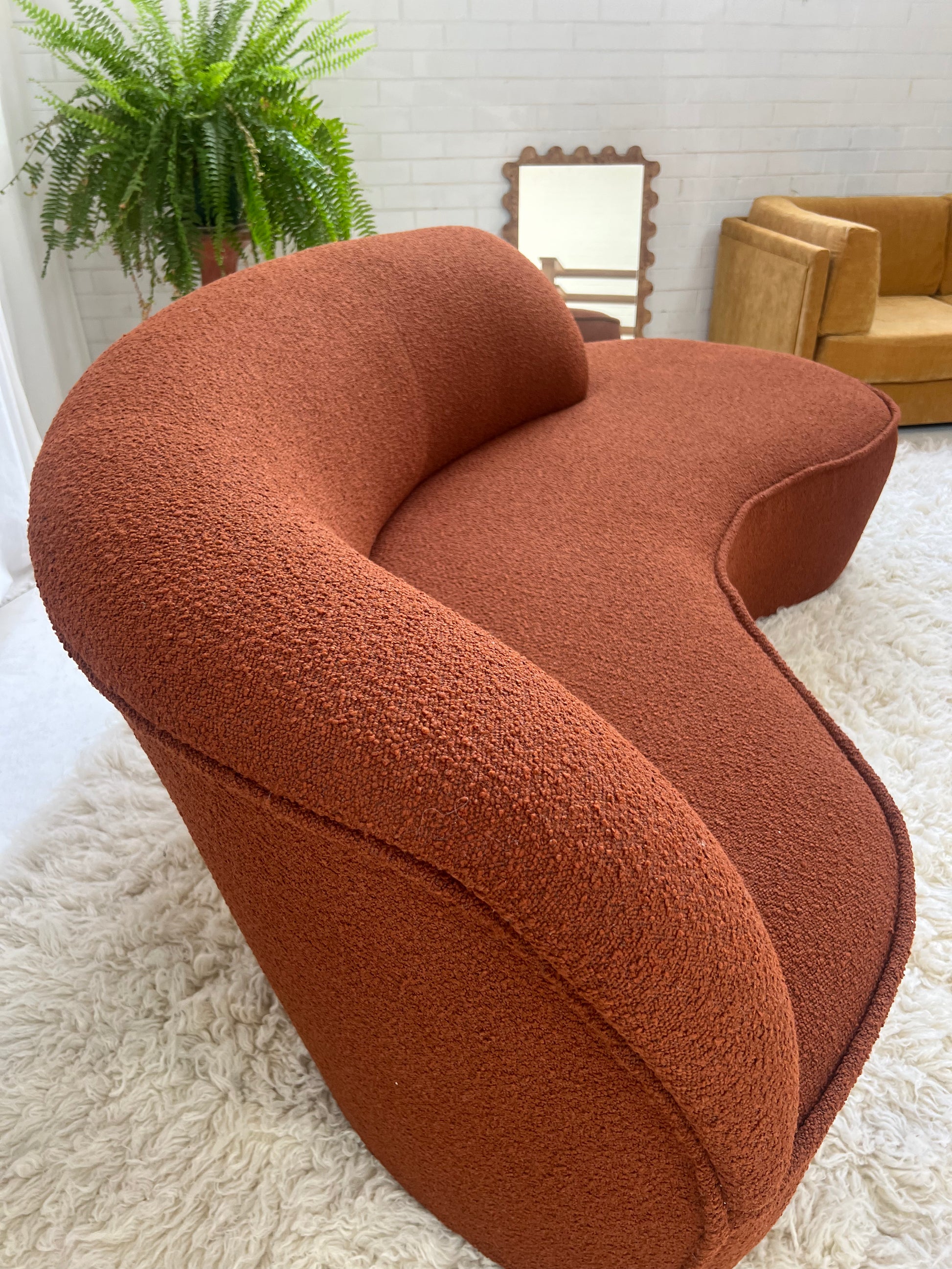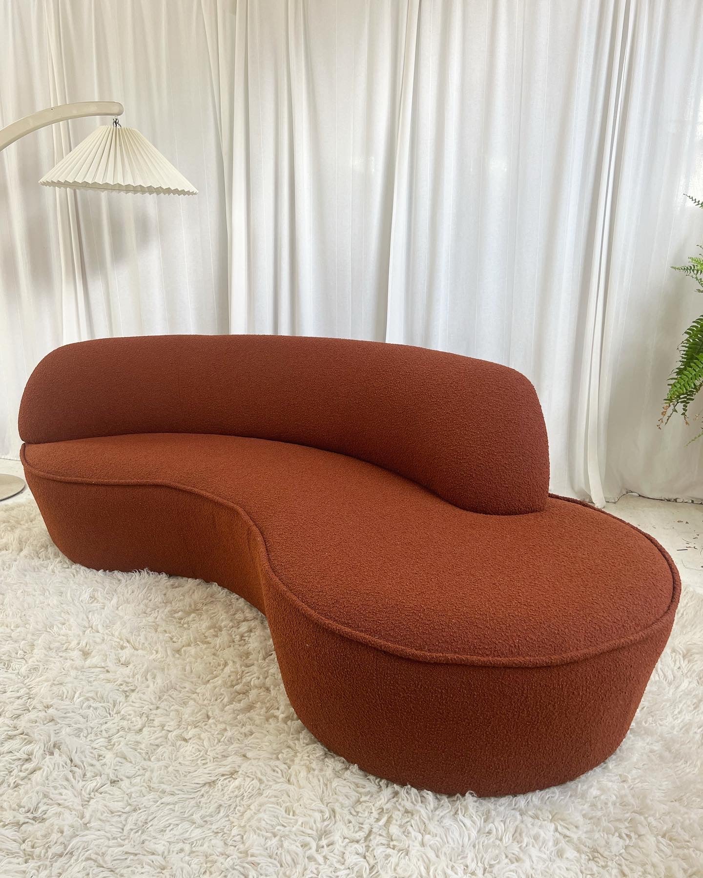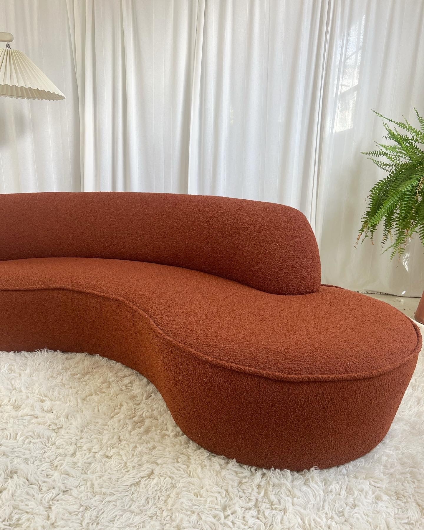 - Bespoke Rust Boucle Curved Sofa