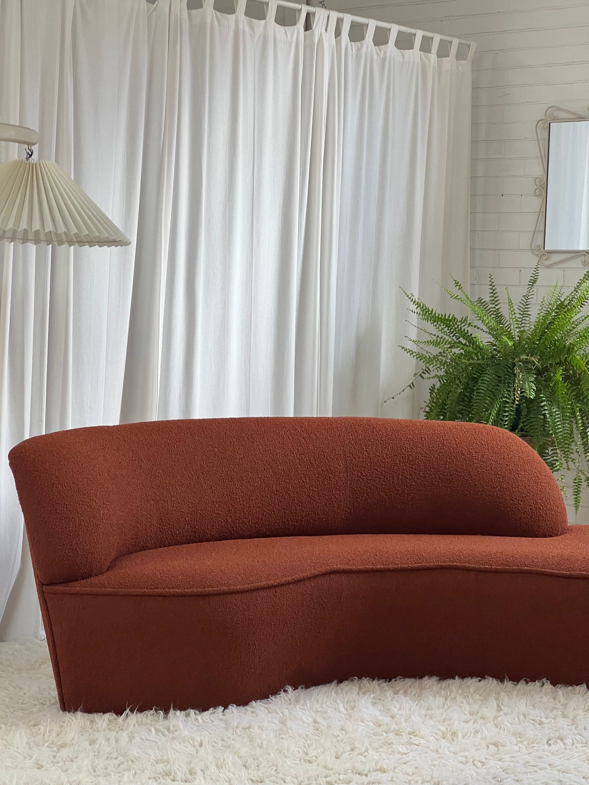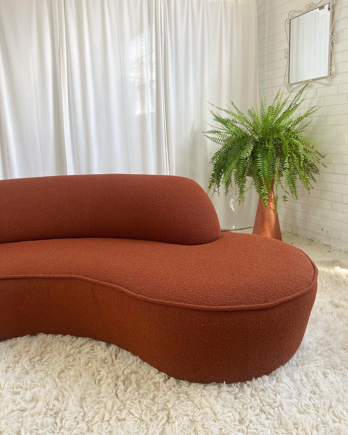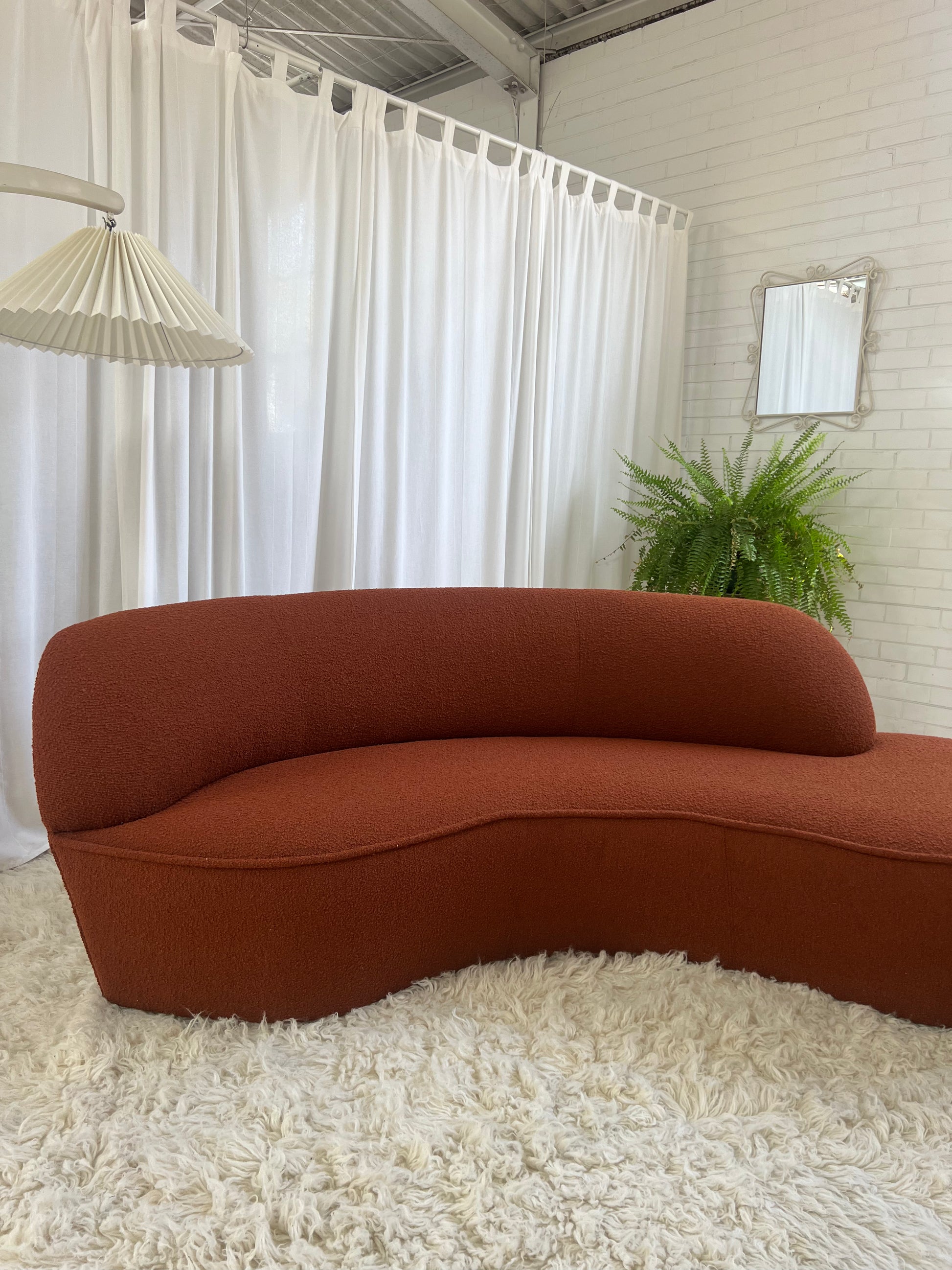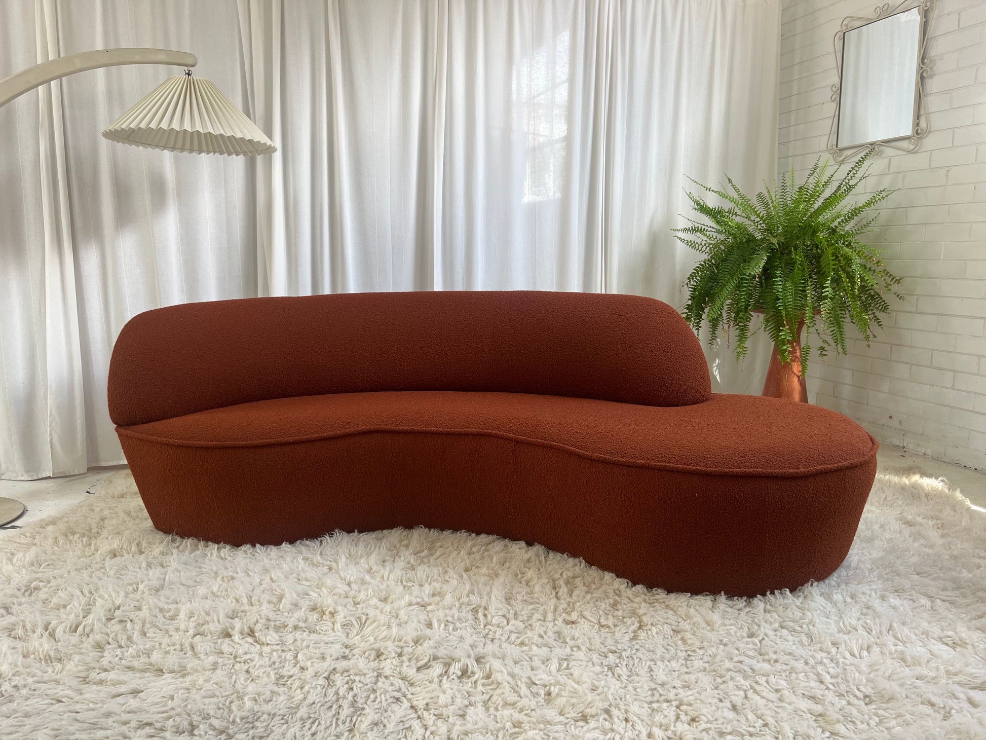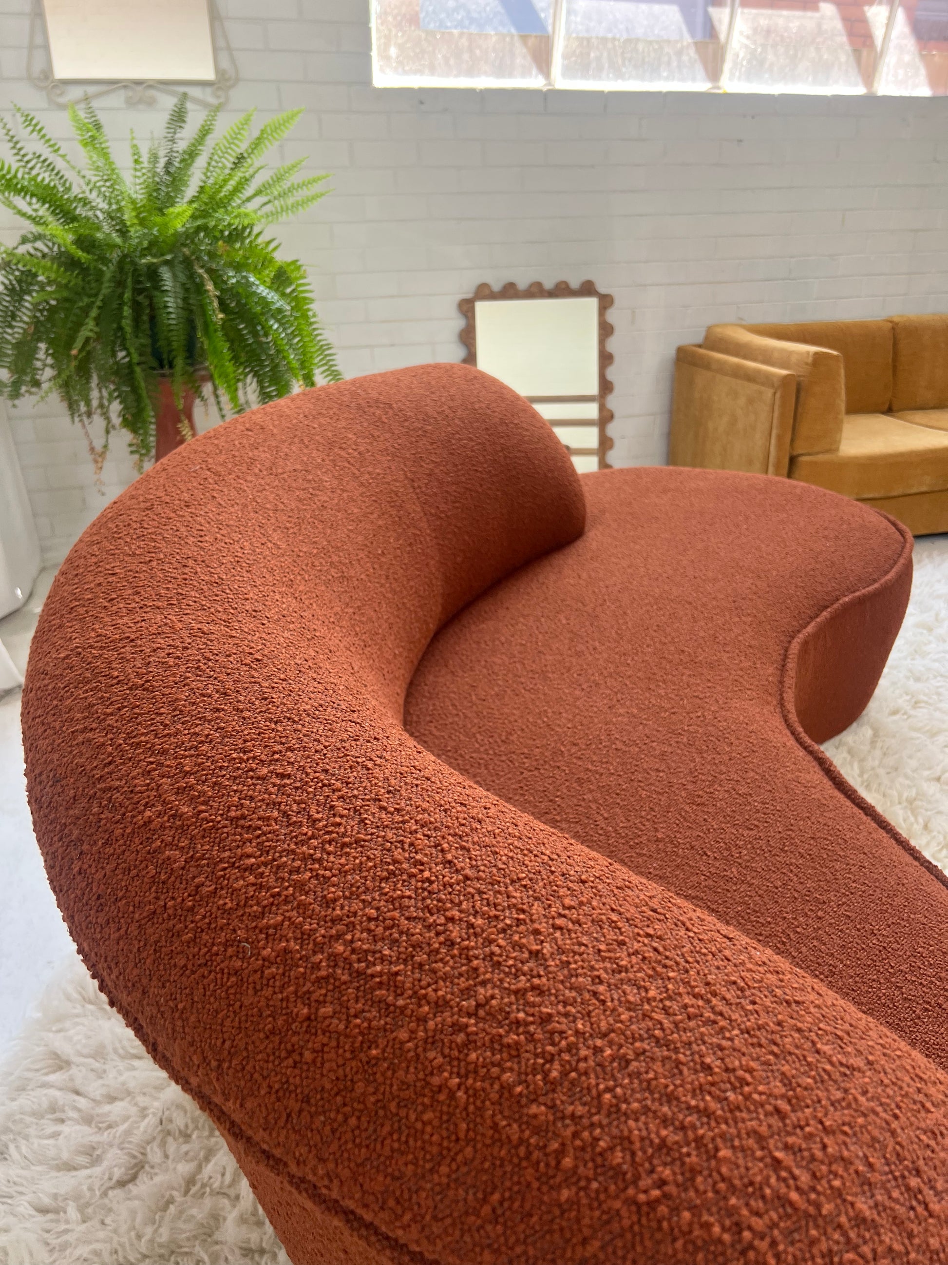 - Bespoke Rust Boucle Curved Sofa