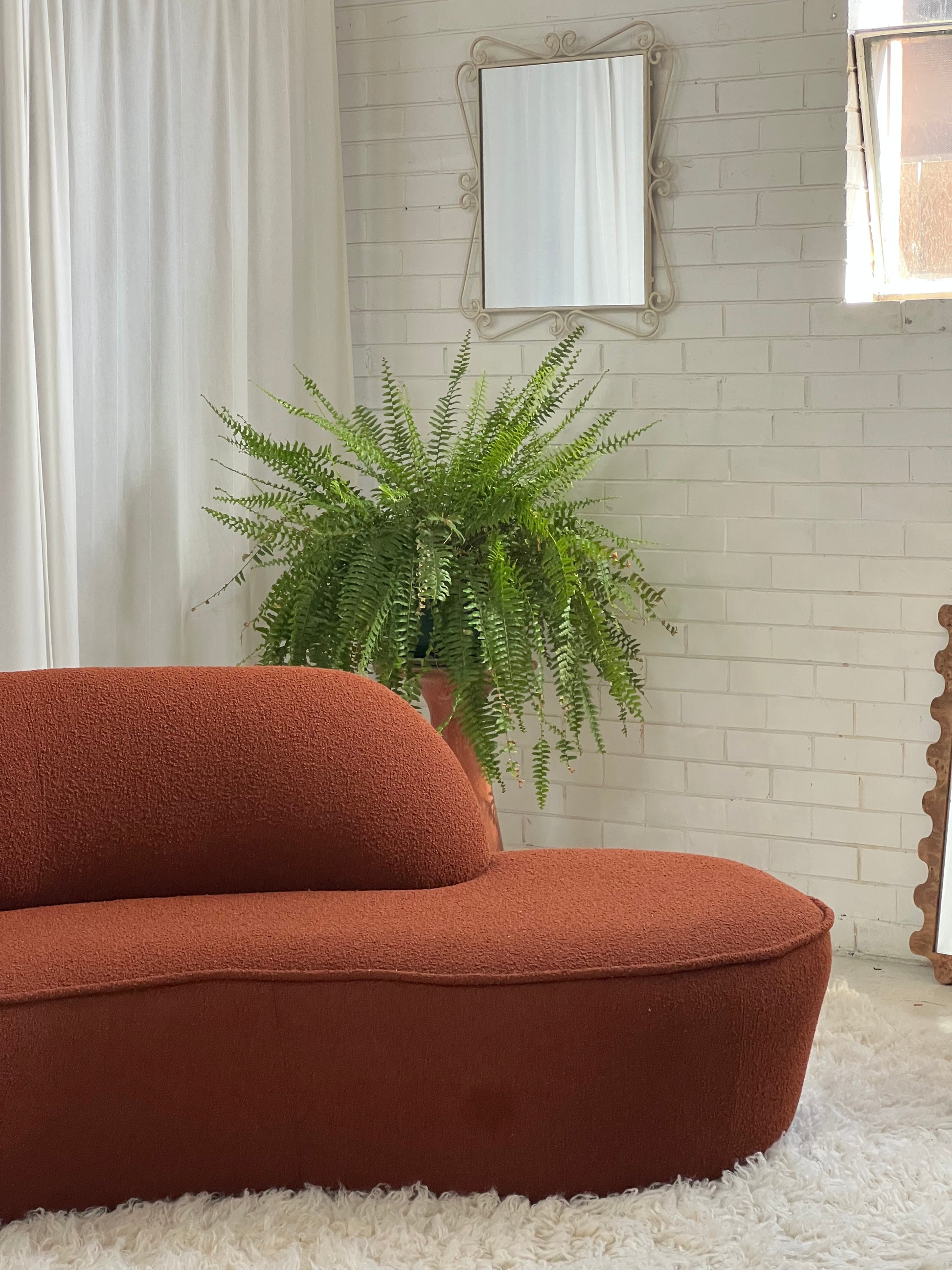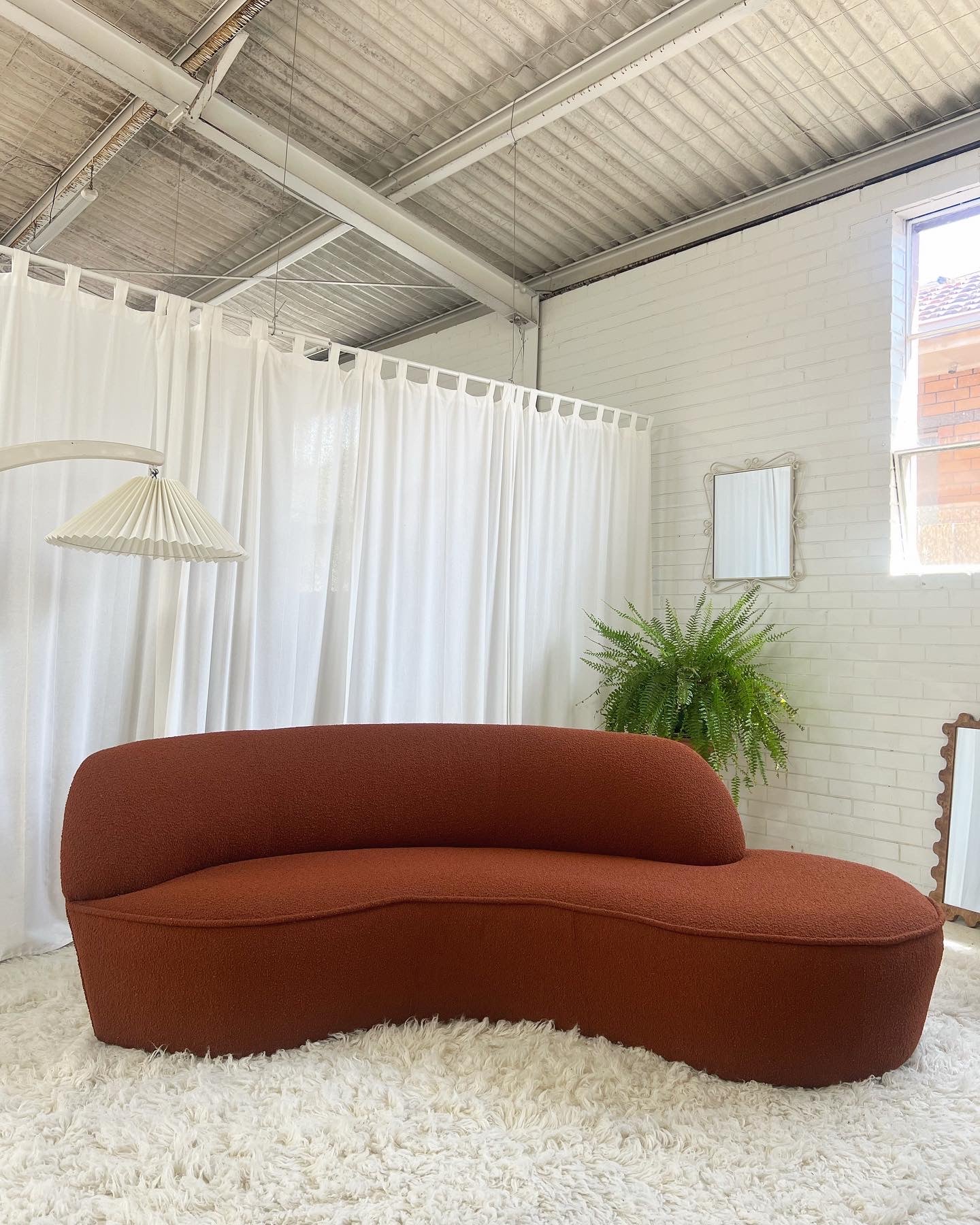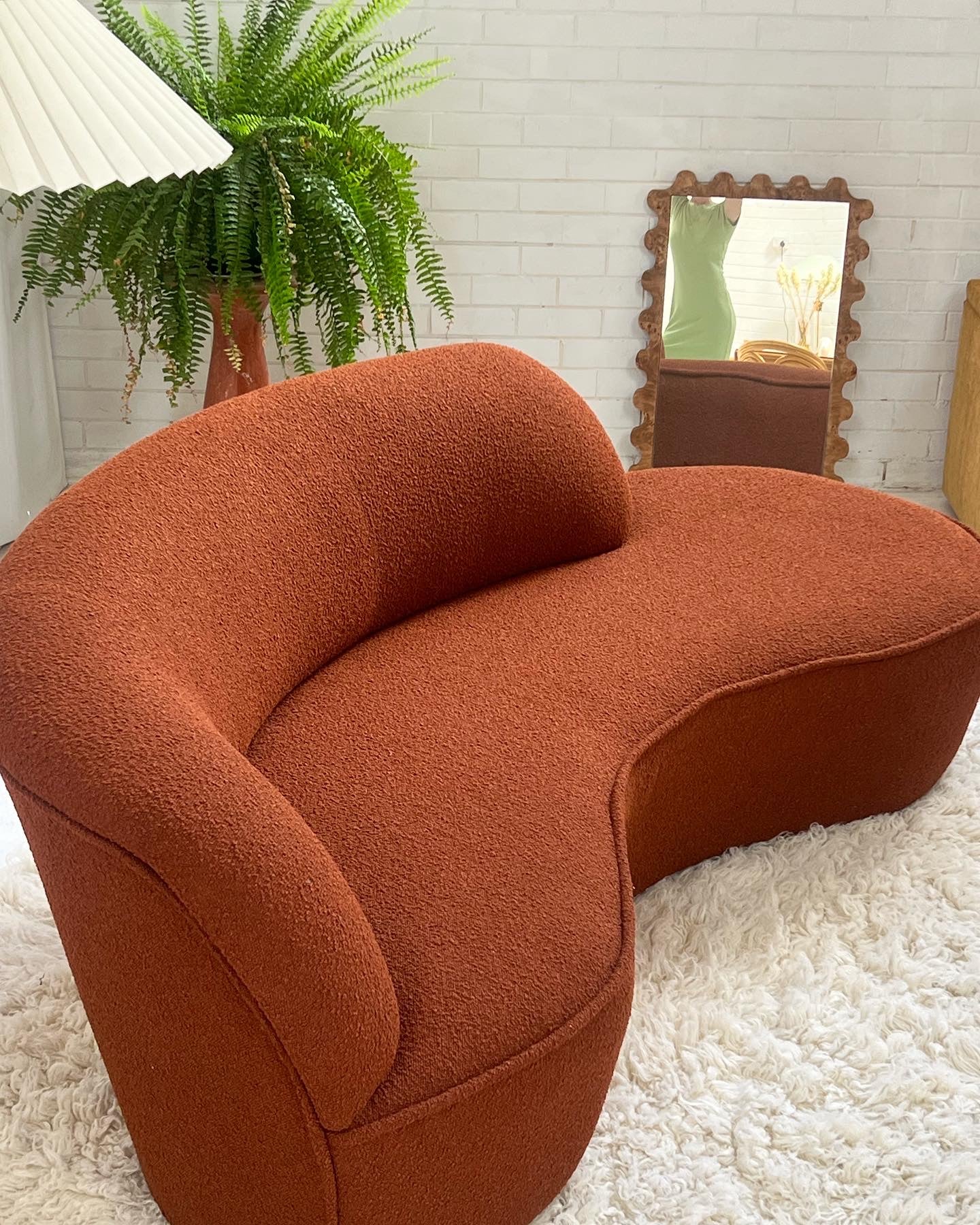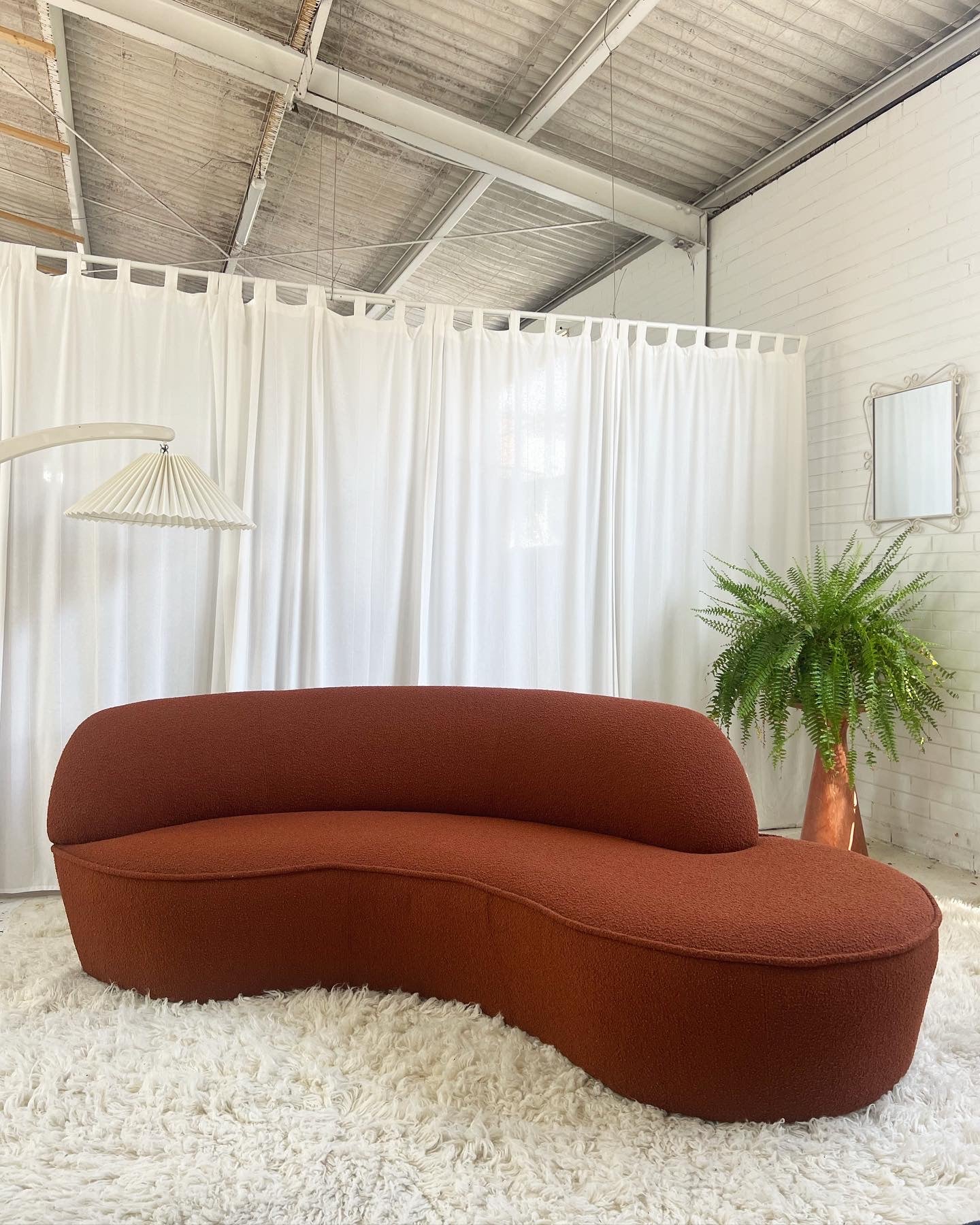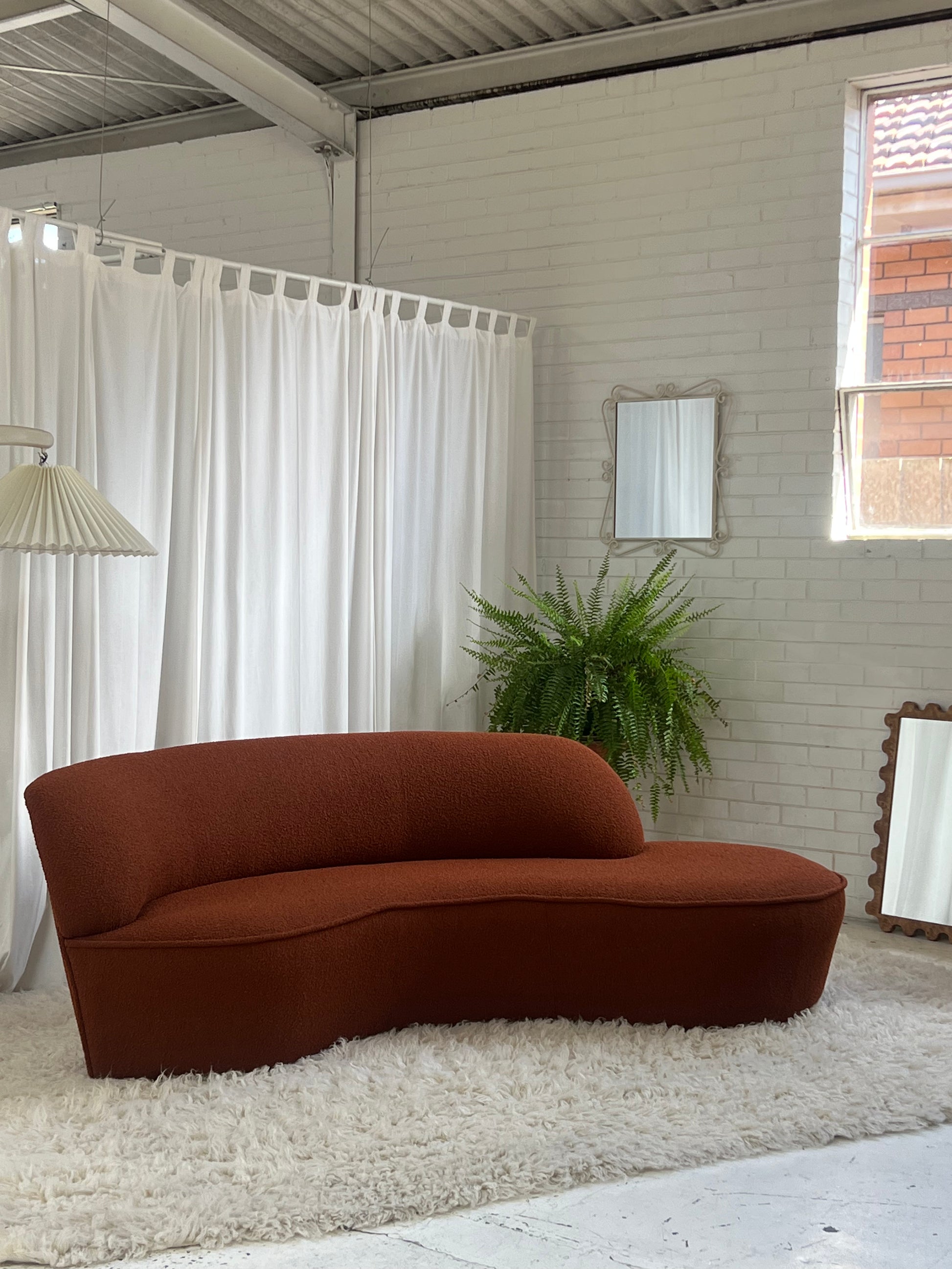 - Bespoke Rust Boucle Curved Sofa