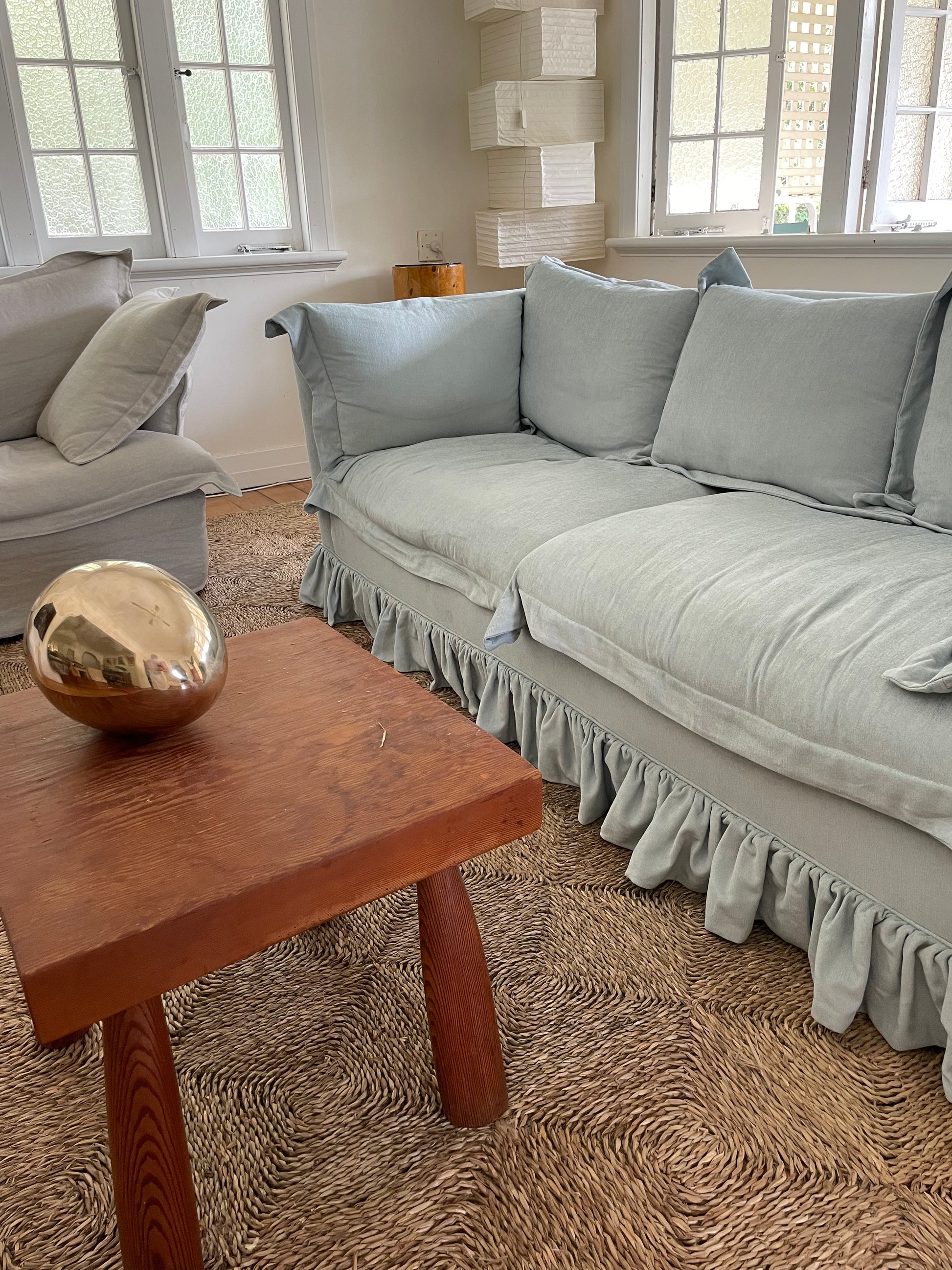 A Gorgeous Freshly Reupholstered Vintage Linen Sofa.