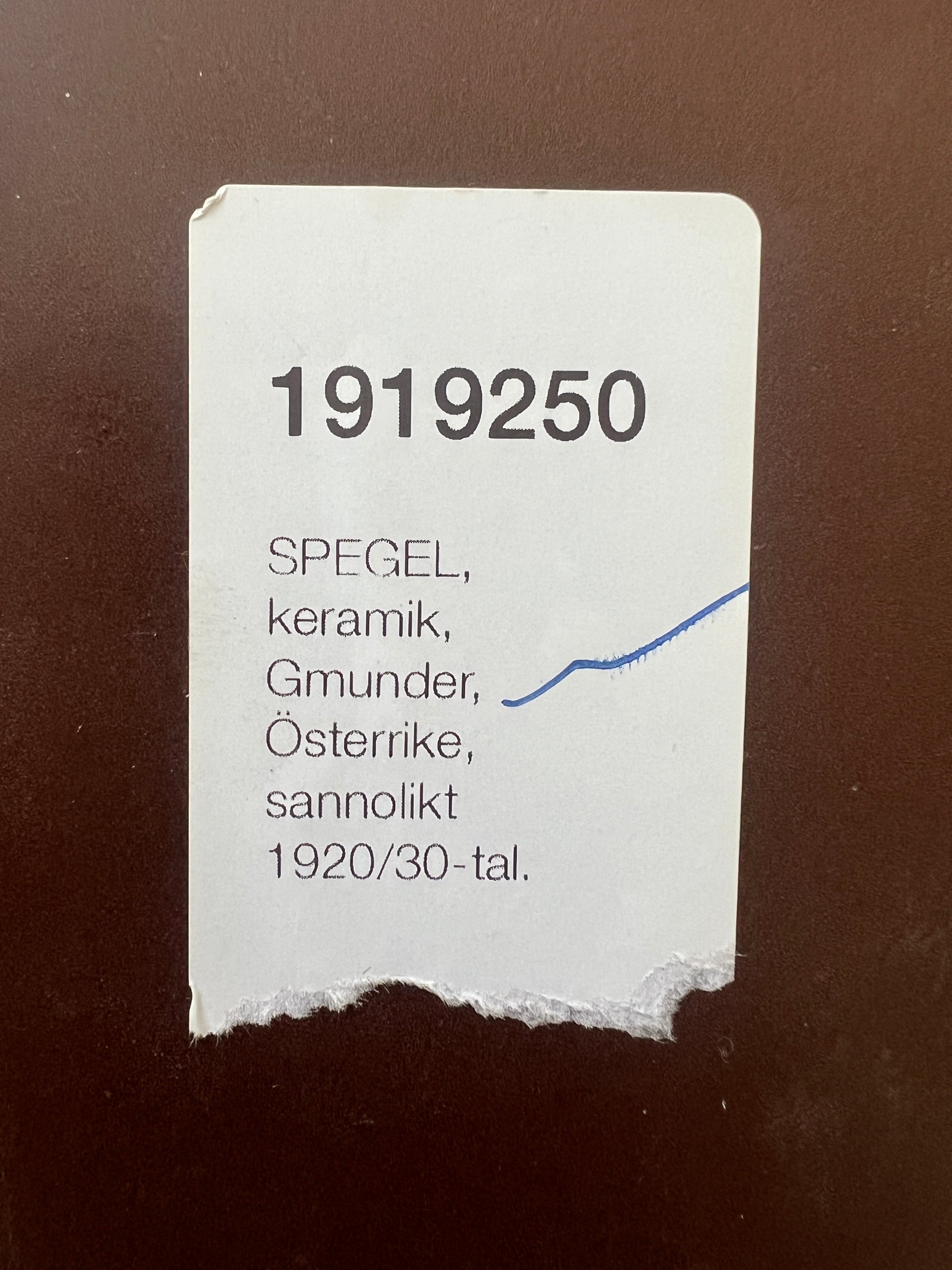 Beautiful 1930s scalloped ceramic mirror, Austria. Crackle effect with charming face details as shown.