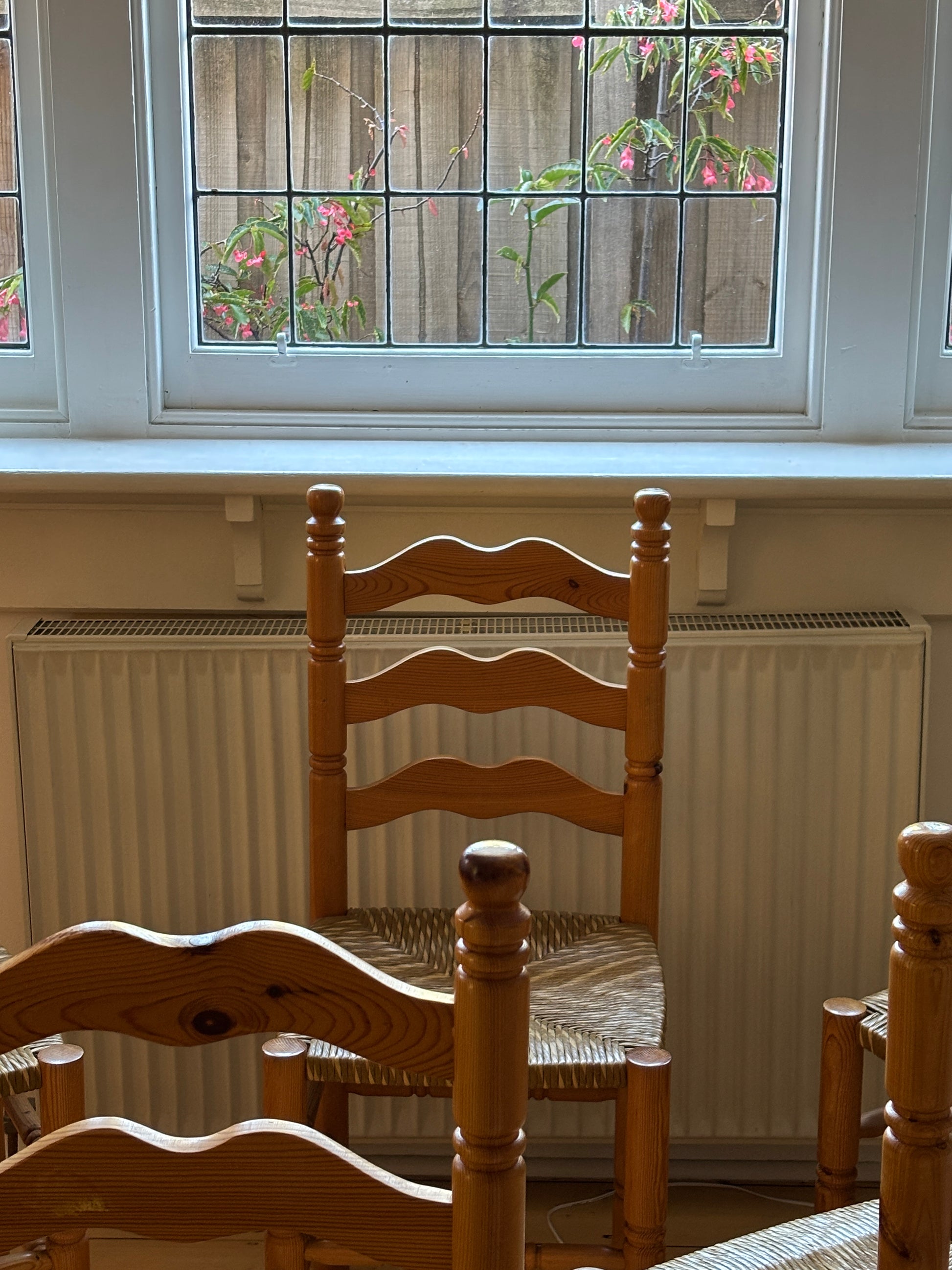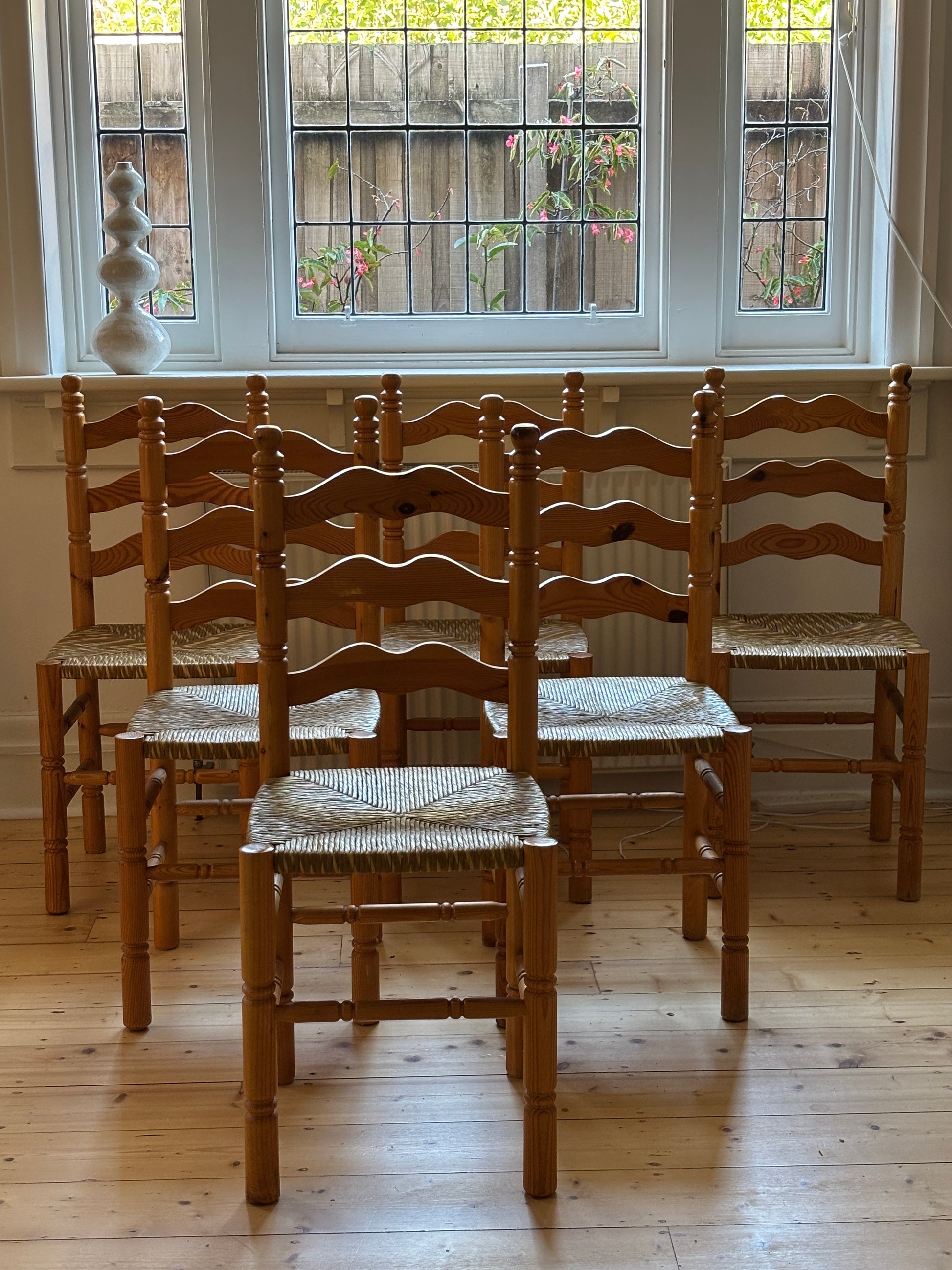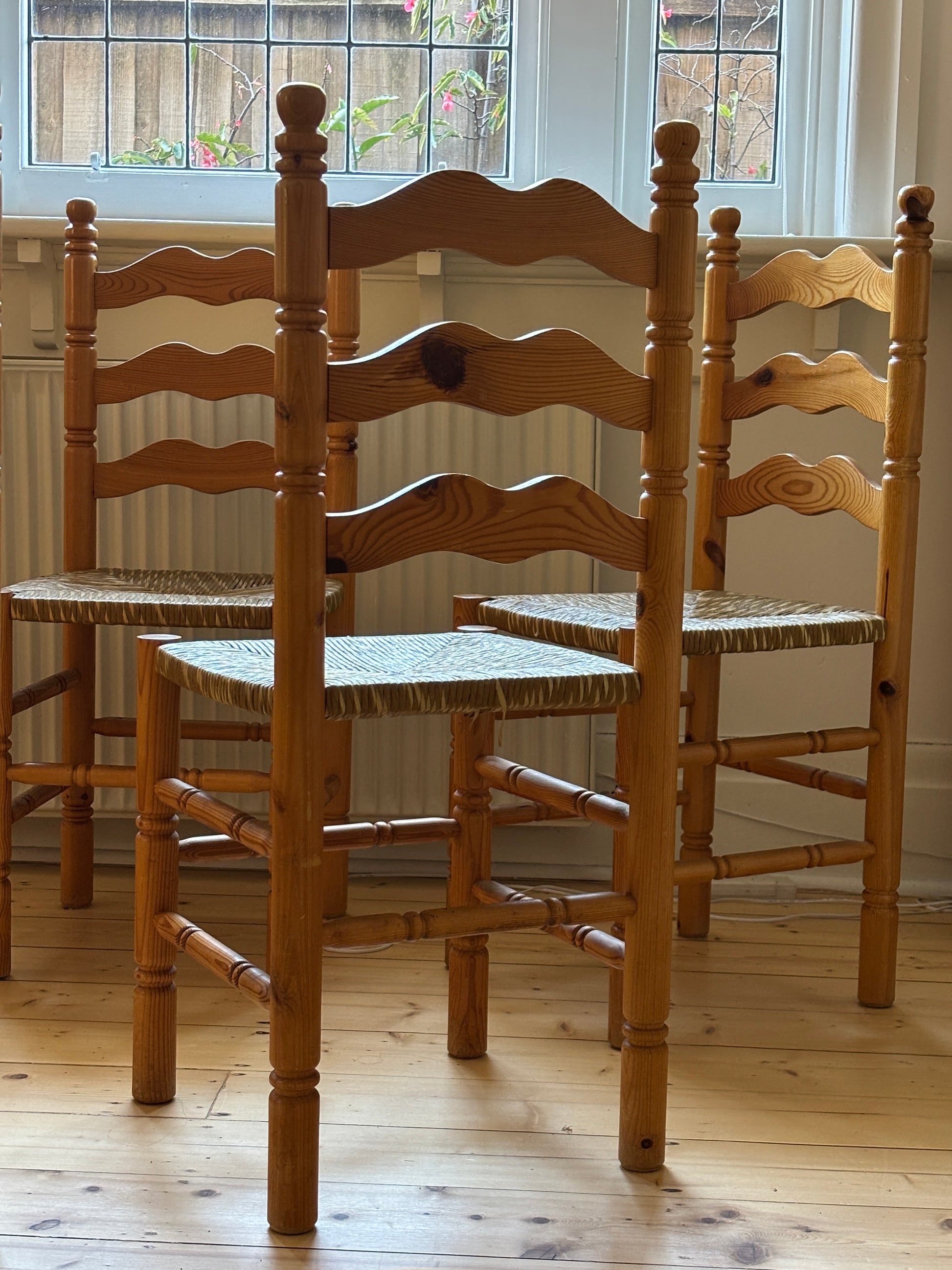 Set of Six Vintage Pine Dining Chairs