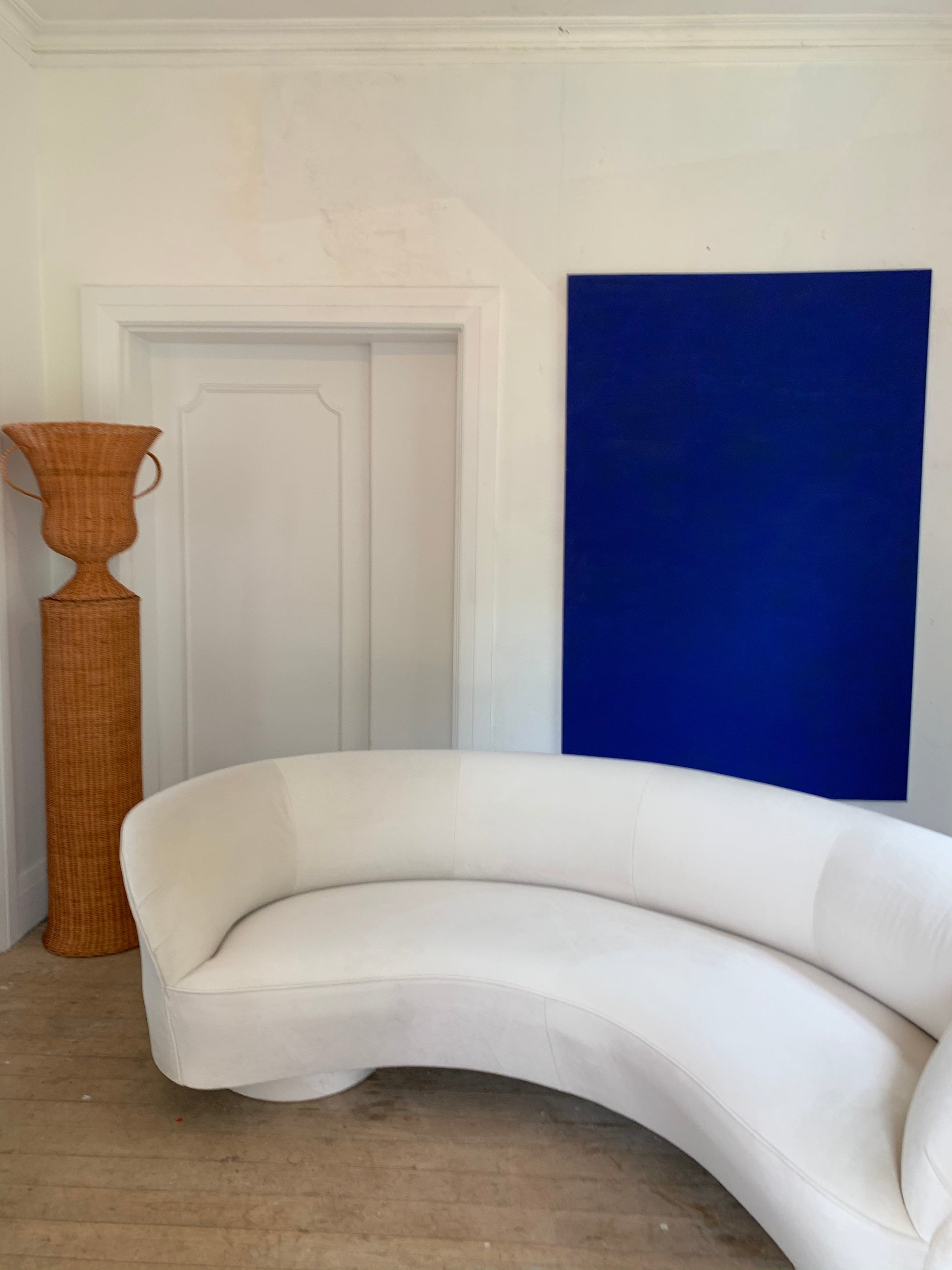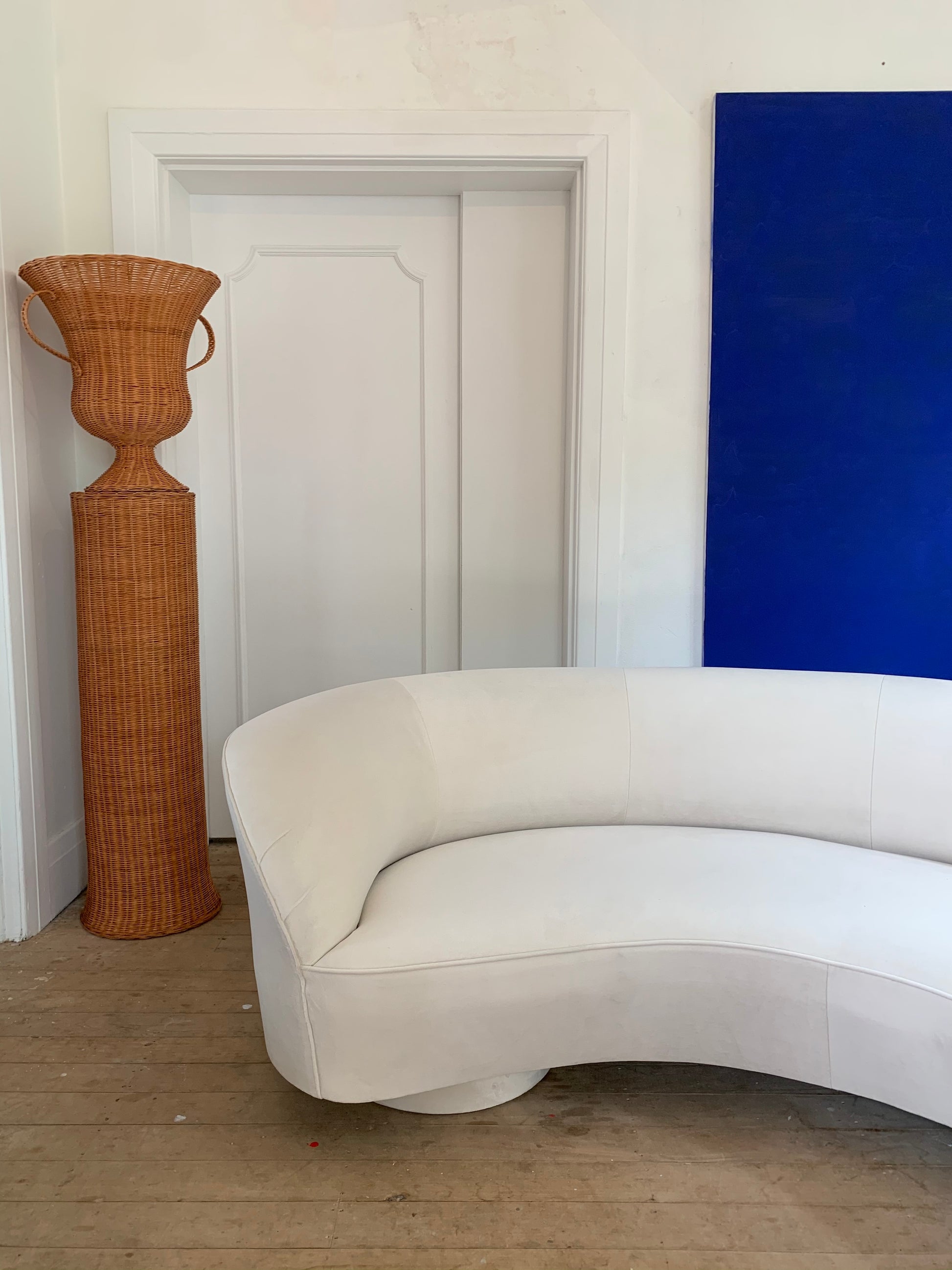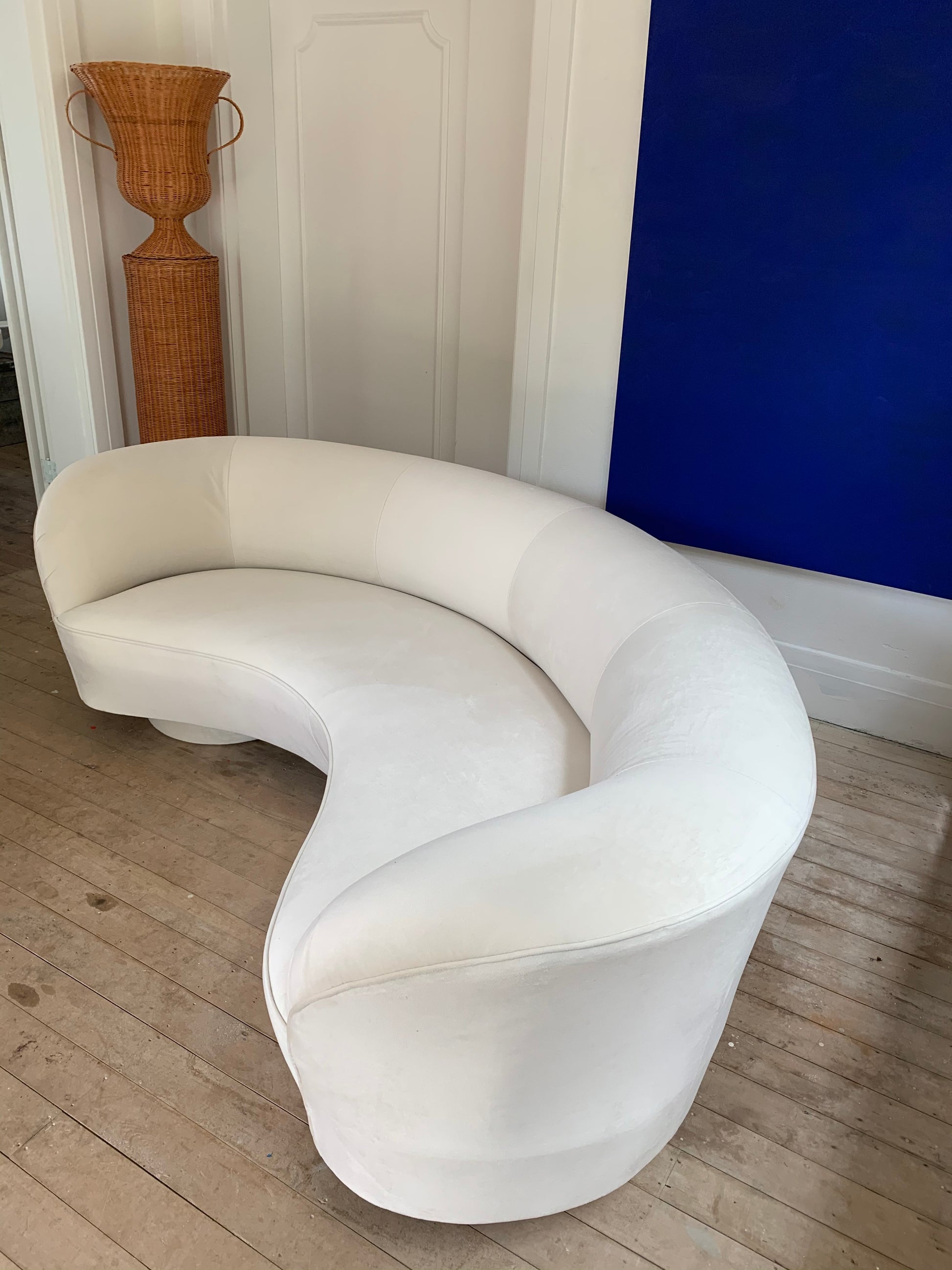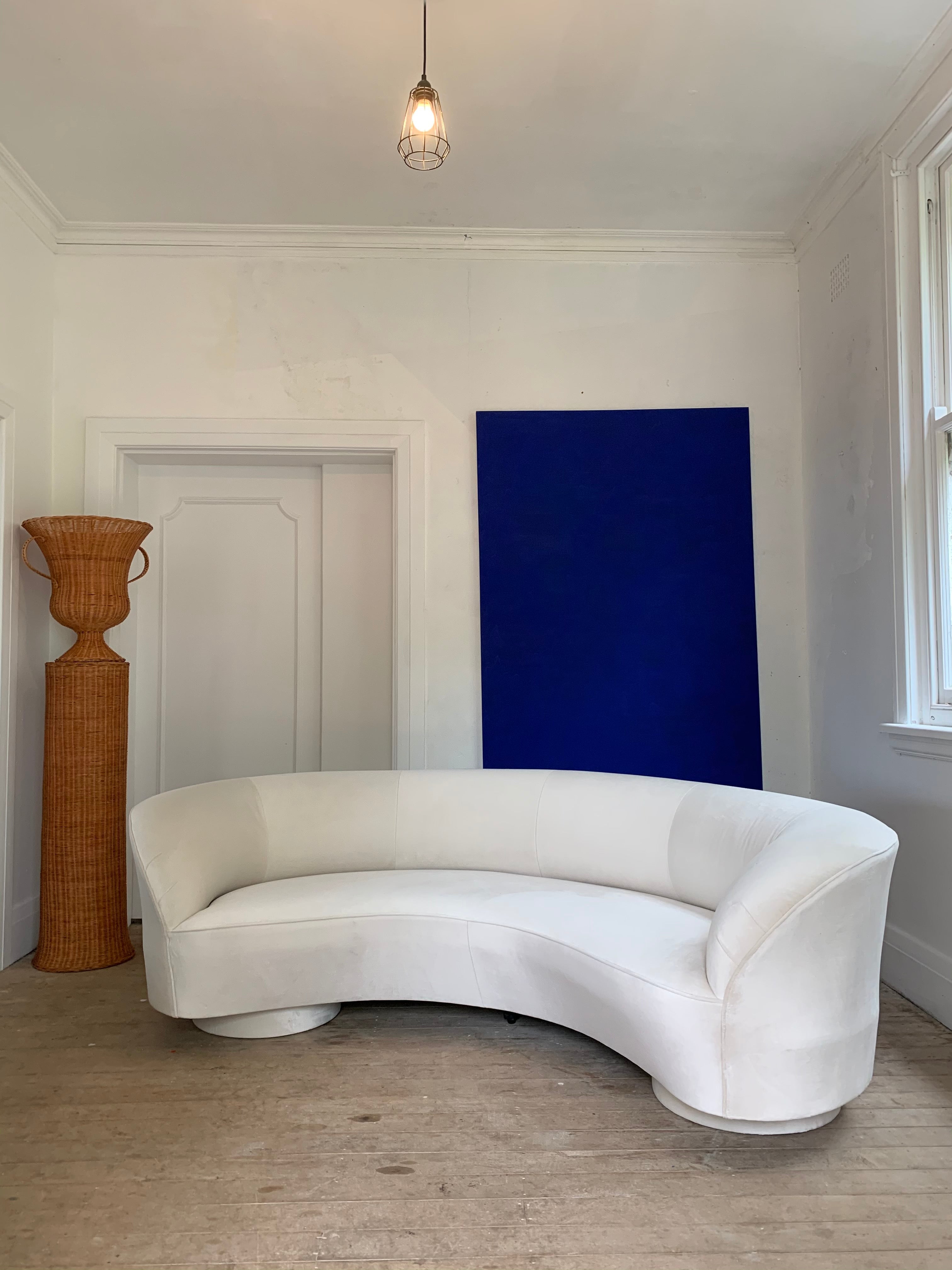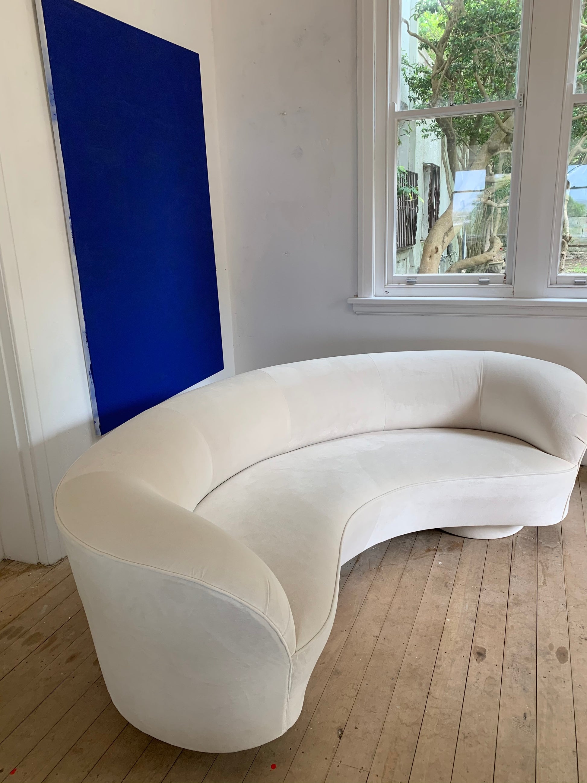 Brought over to Australia from Europe by previous owners- this sofa is believed to be a Vladimir Kagan. It’s shape and dimensions are all correct but as it has been reupholstered there are no makers marks.