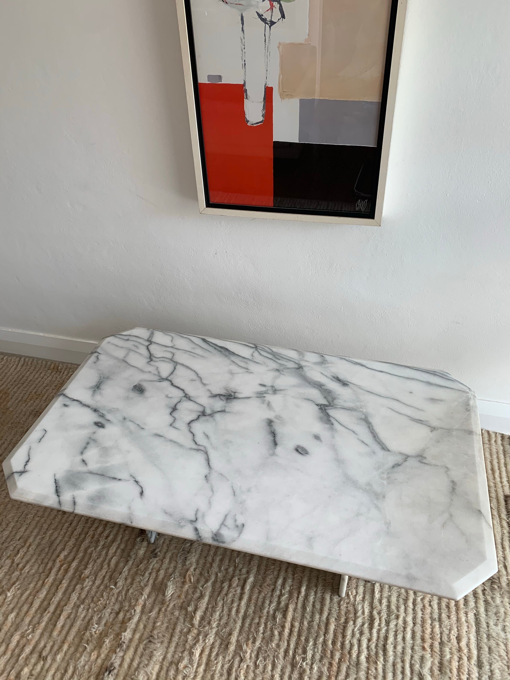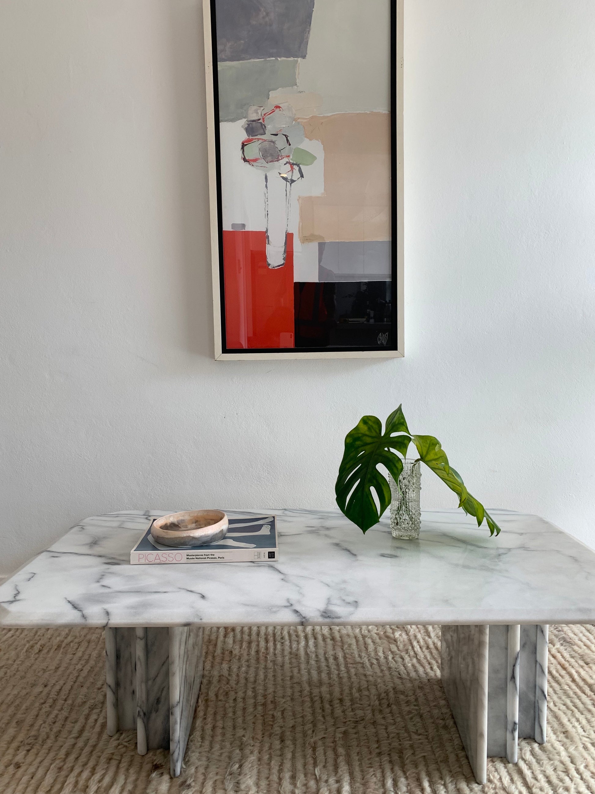 Vintage Carrara Marble coffee table with lovely sculptural legs. Beautiful and classic marble piece which works well with any colour palette. The legs are separate from the table top.