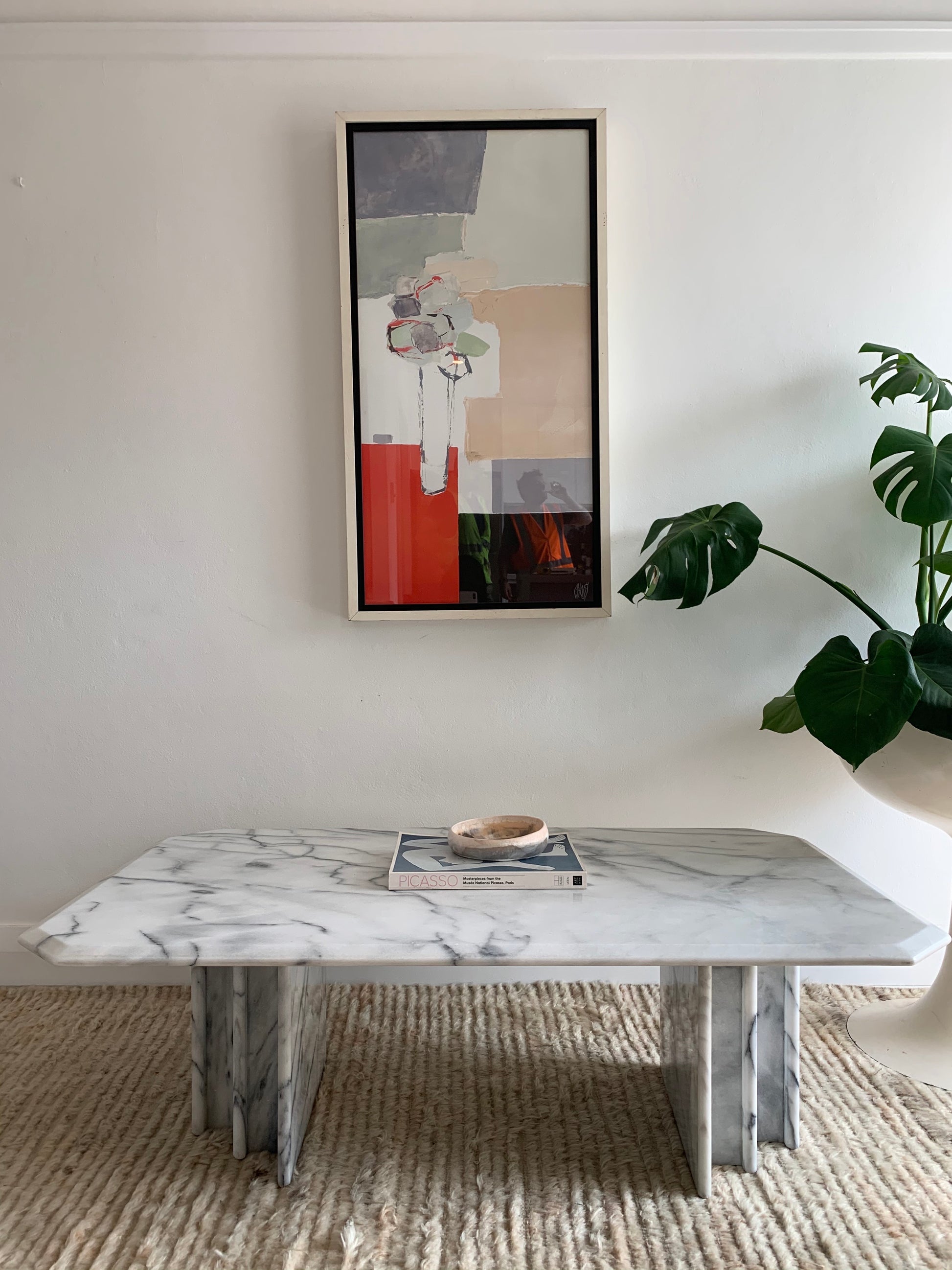Vintage Carrara Marble Coffee Table with Sculptural Base
