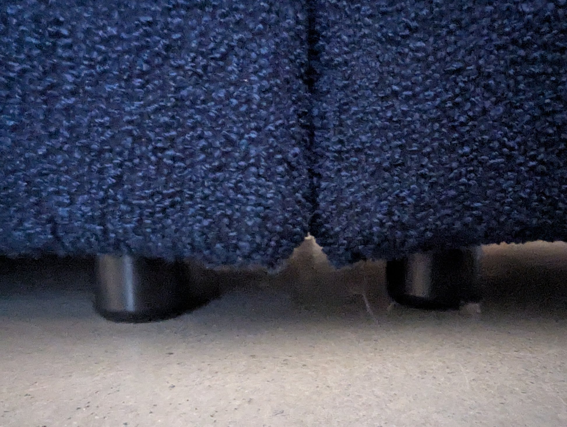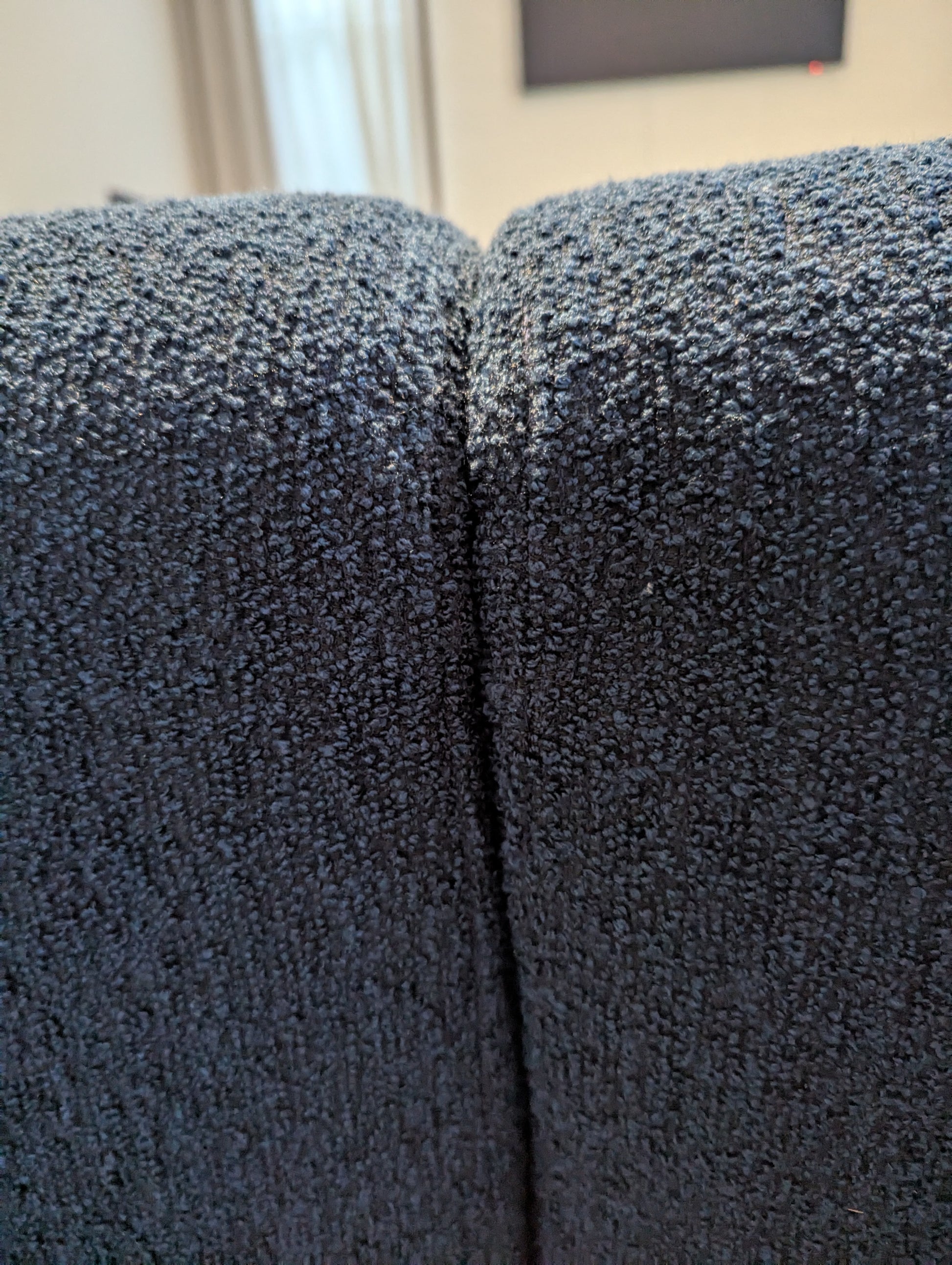Excellent condition. Some minimal pilling in between cushions and some anomalies with upholstering (as was delivered on original purchase). Full upholstered and pics provided of all wooden legs.
