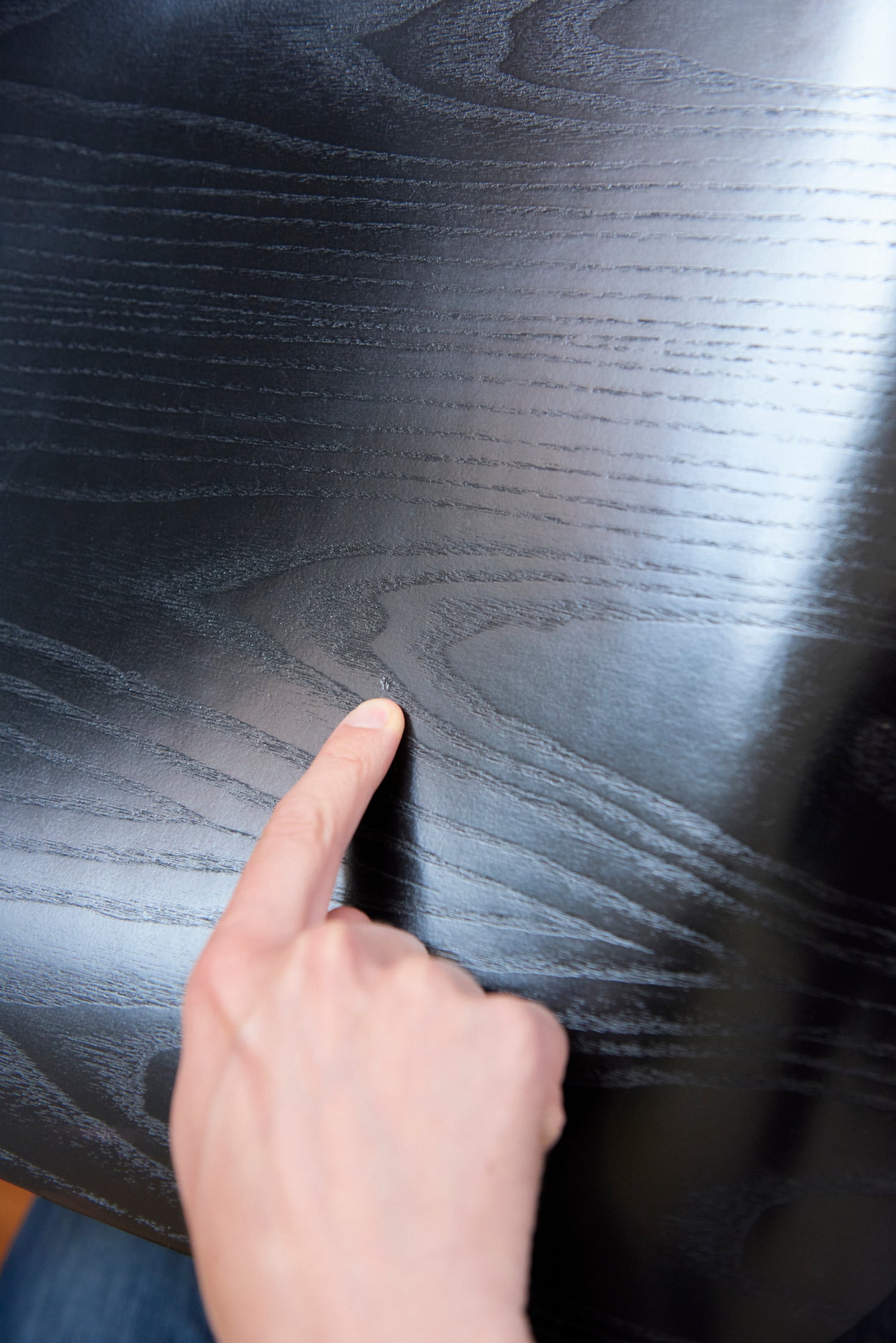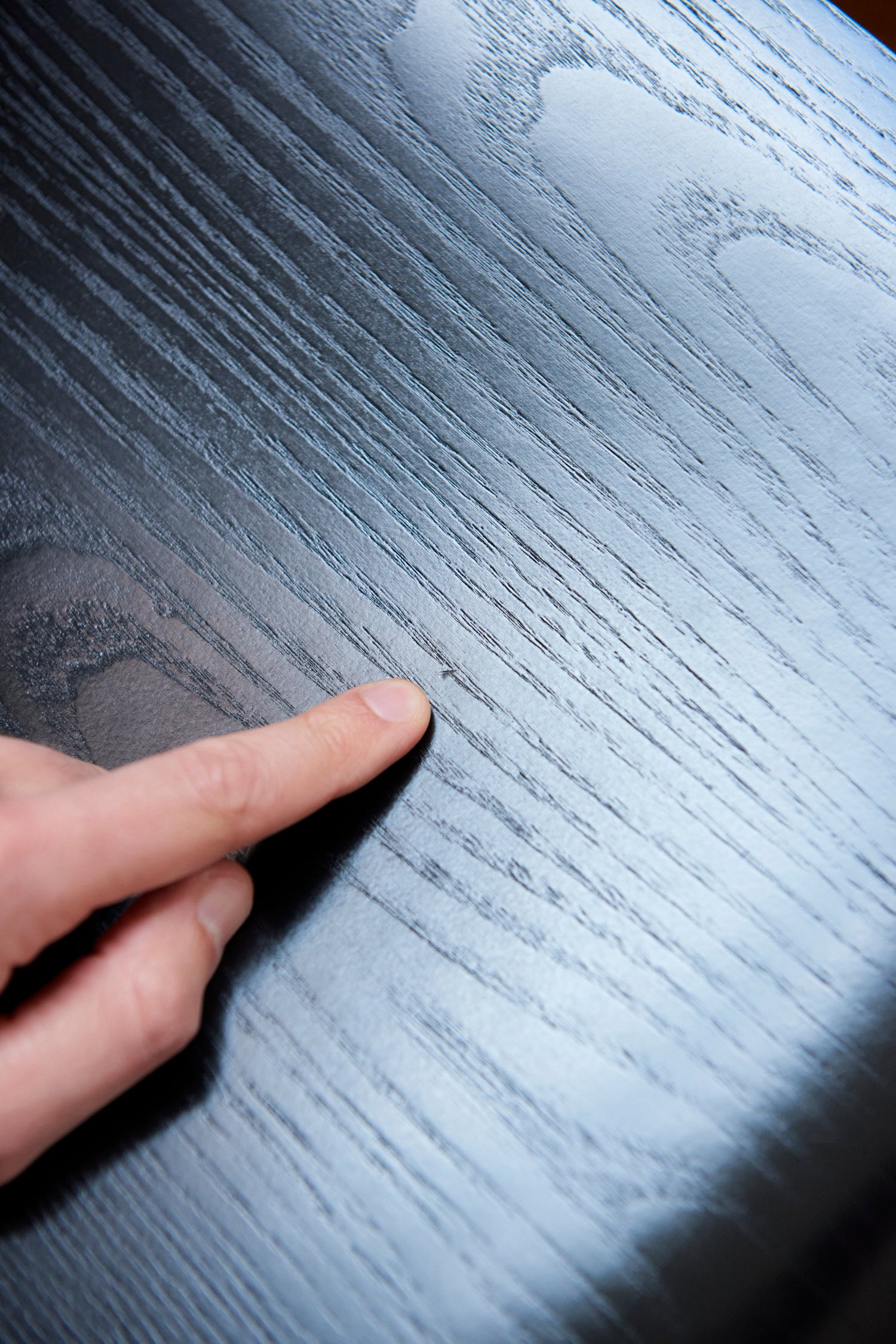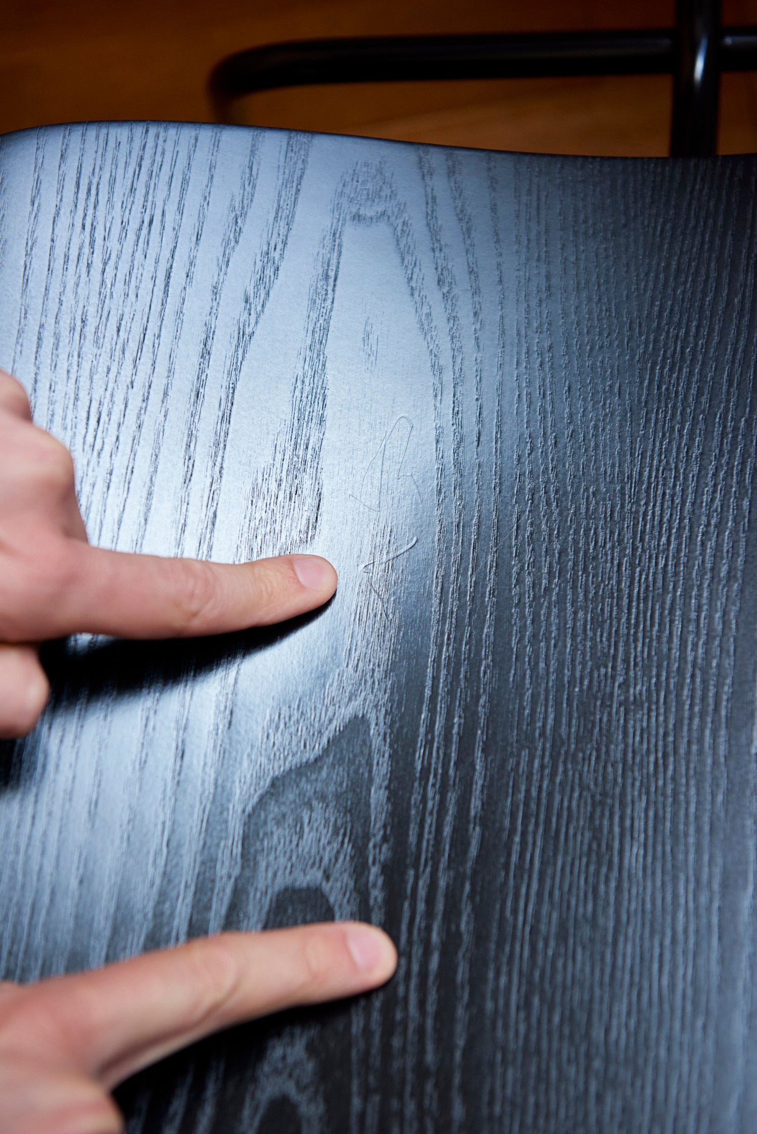 Moulded Plywood (American Ash), stained black; powder coated black metal base
