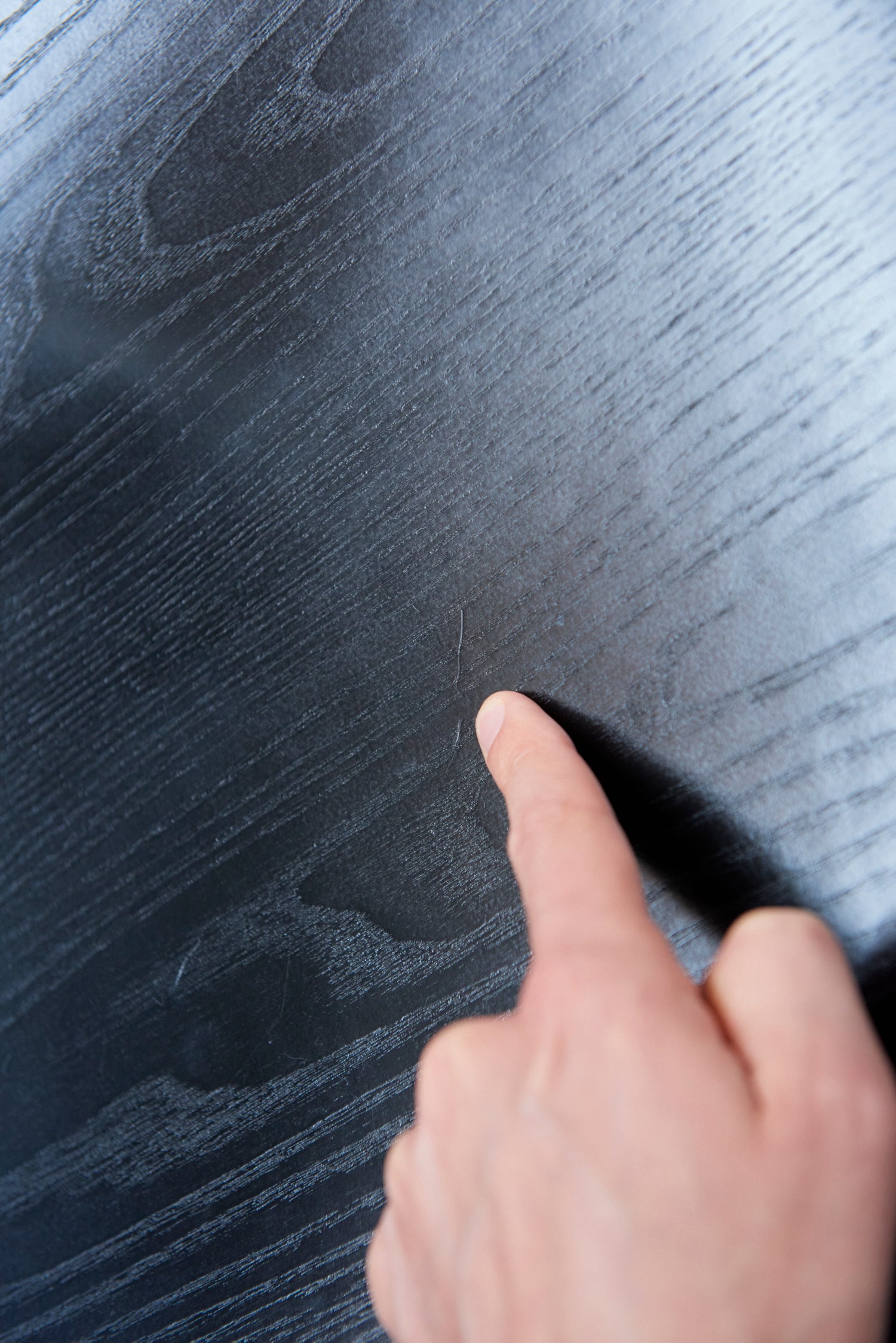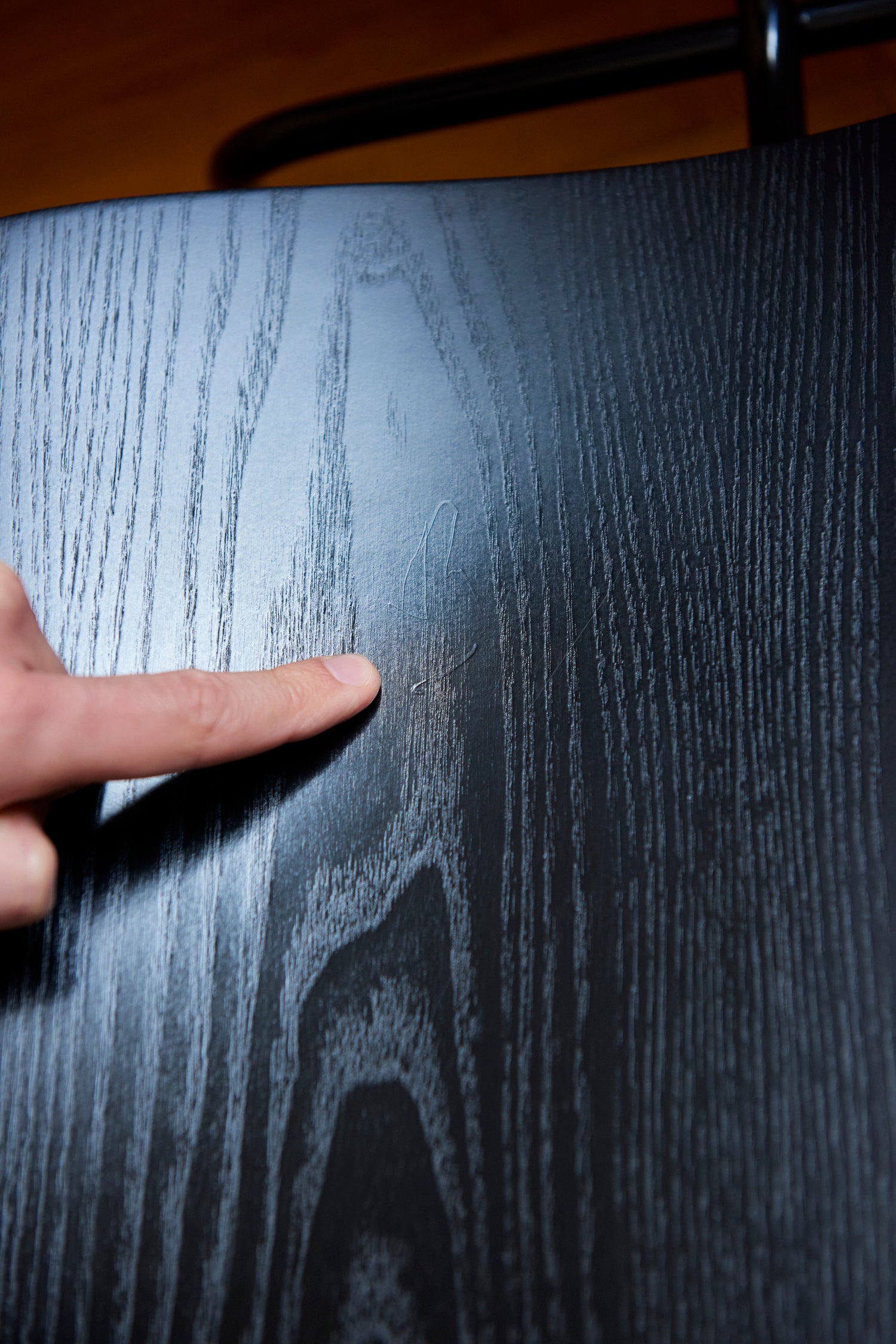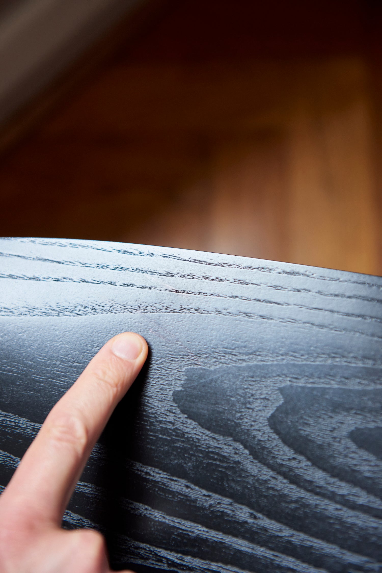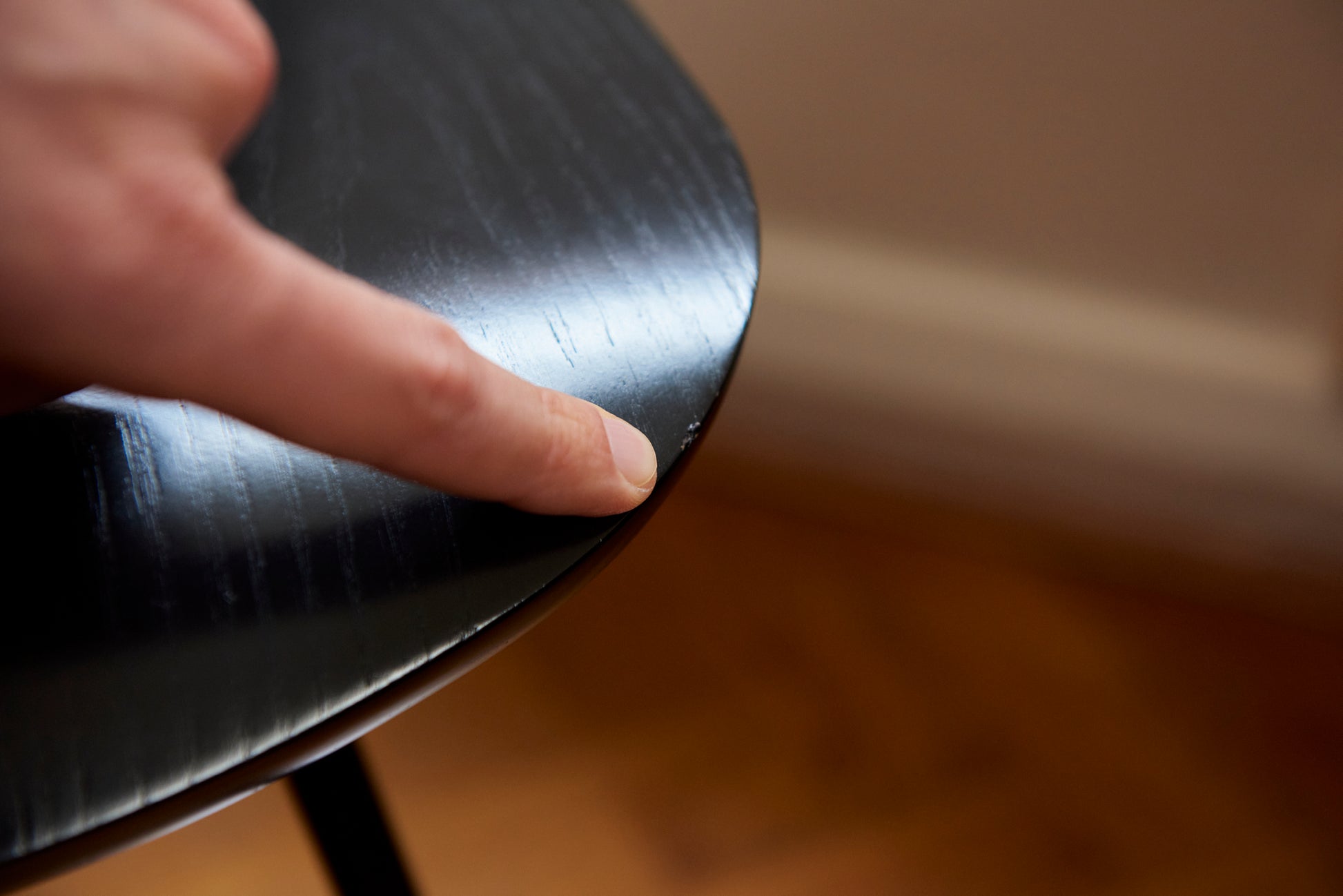 Moulded Plywood (American Ash), stained black; powder coated black metal base