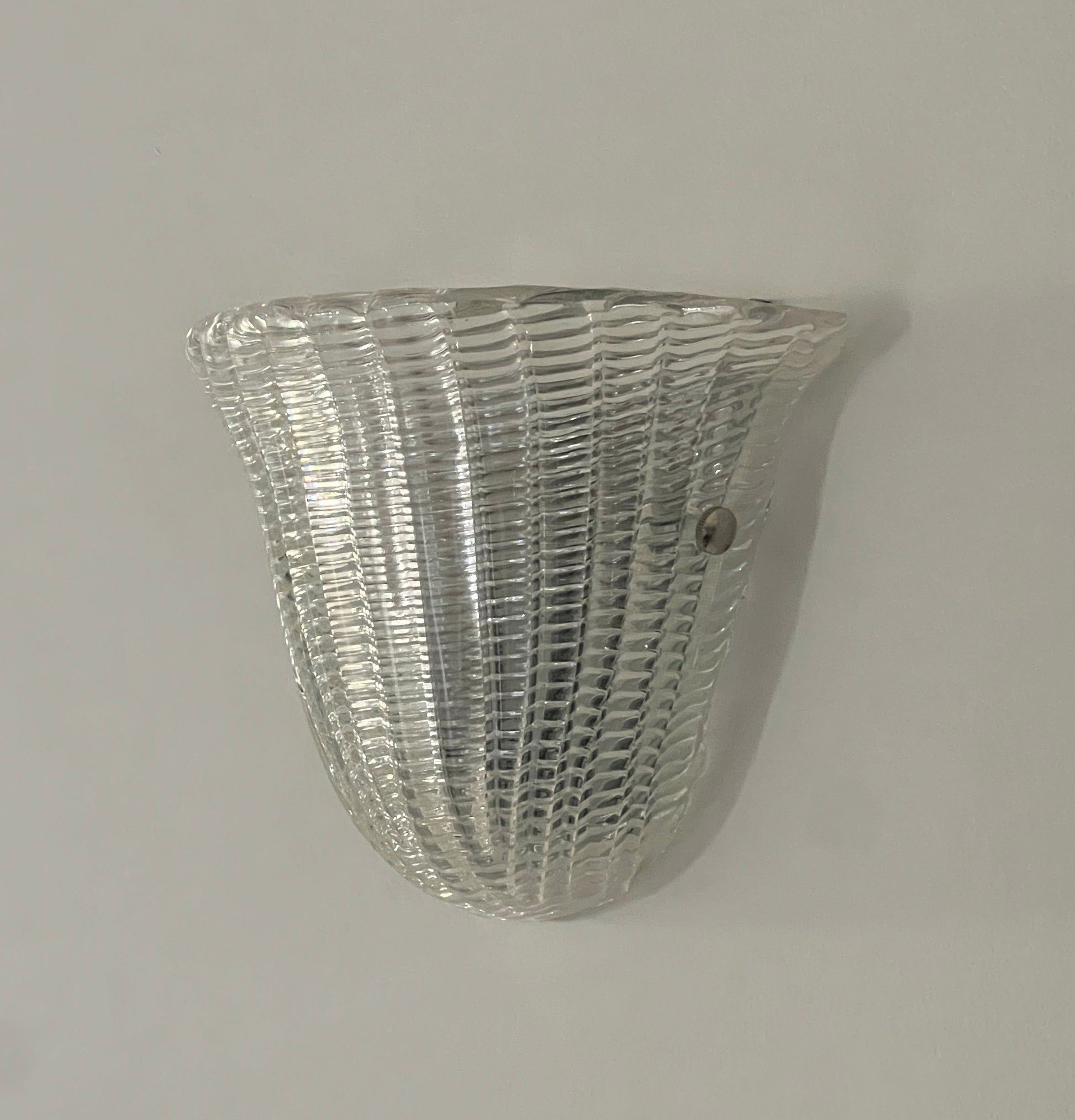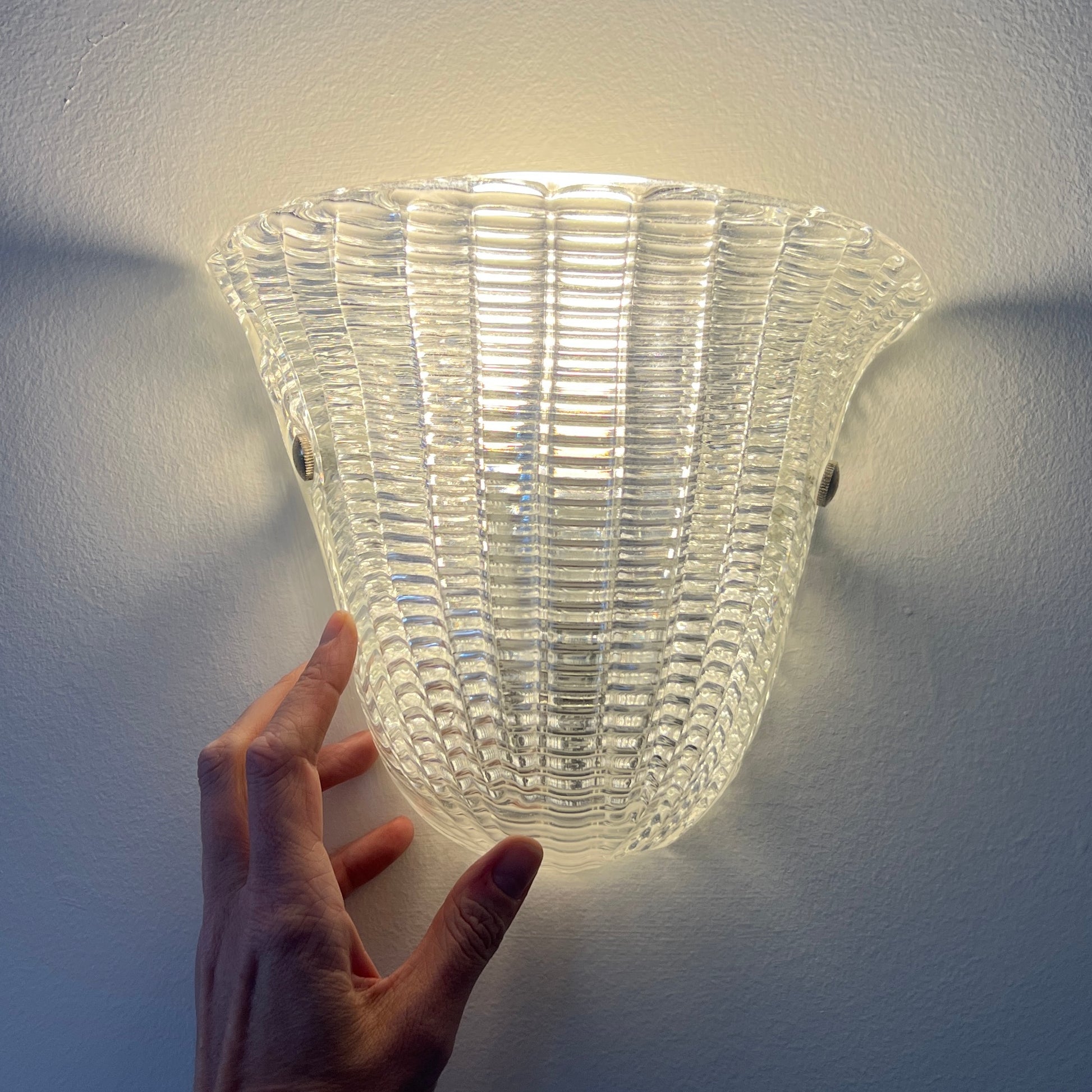 Large vintage Murano glass sconce, Italy. The classic seashell shape but bigger, and with a pleasing ribbed/stripe blown into the glass.