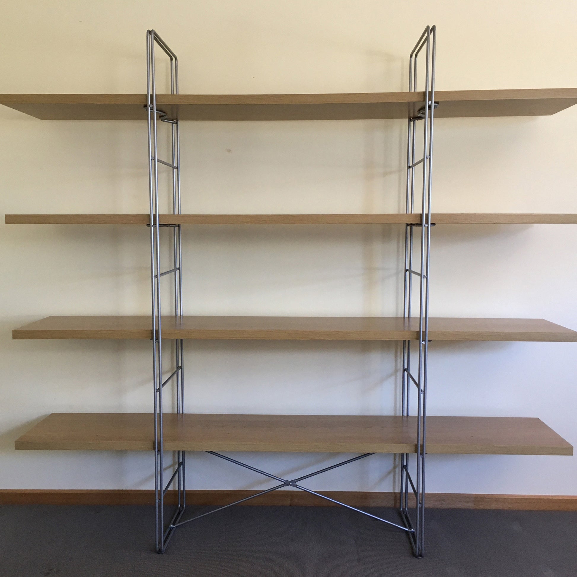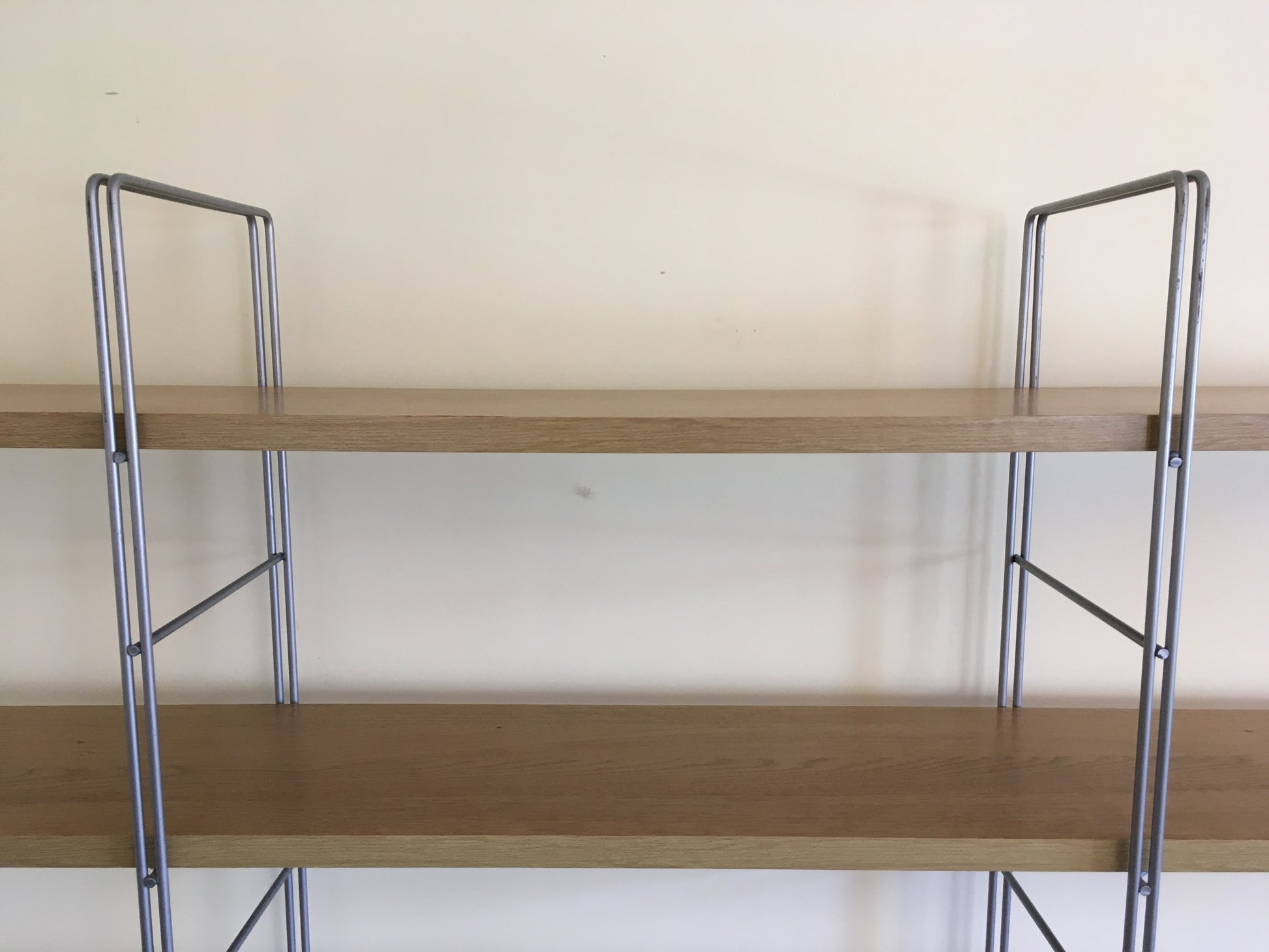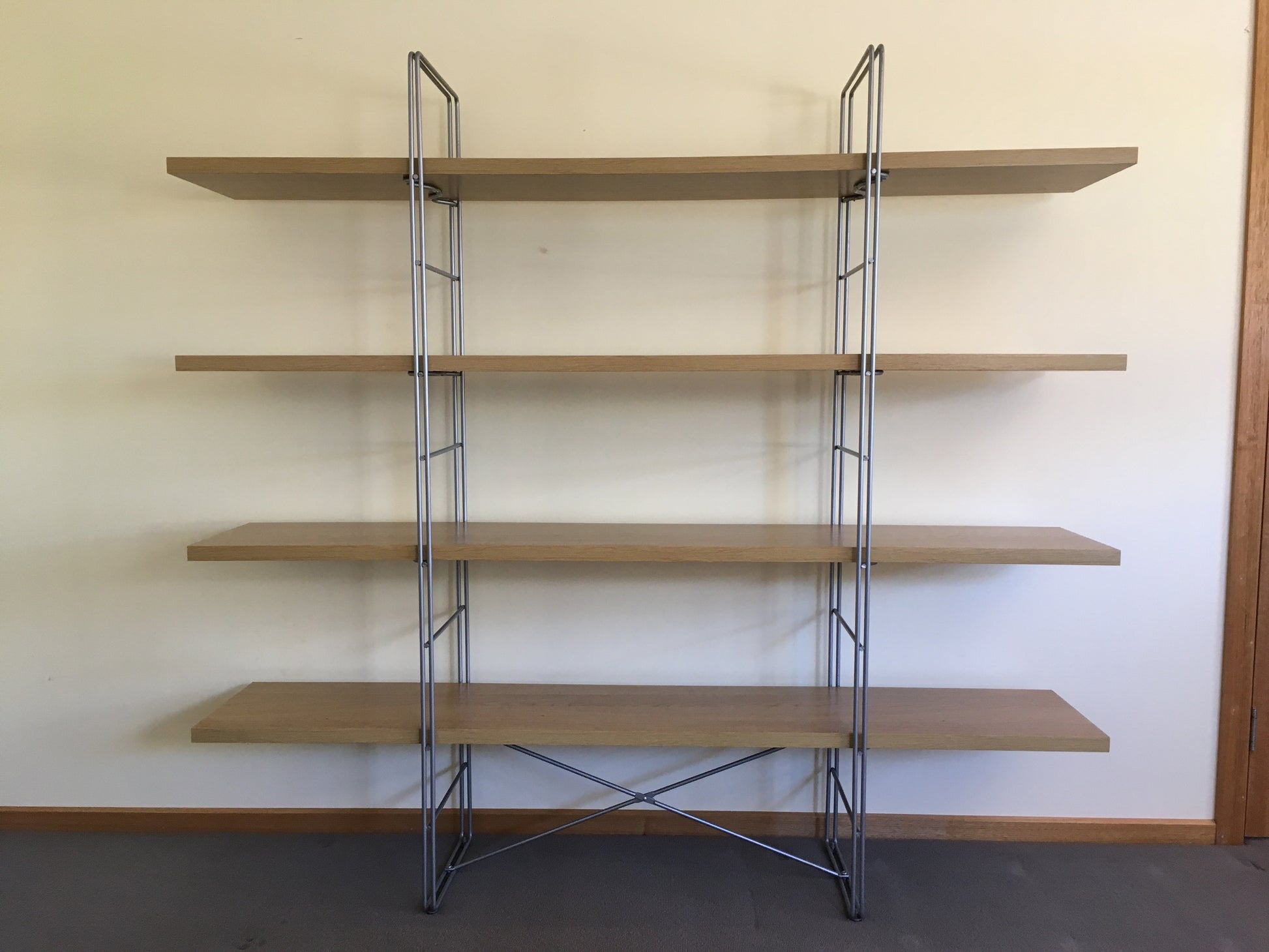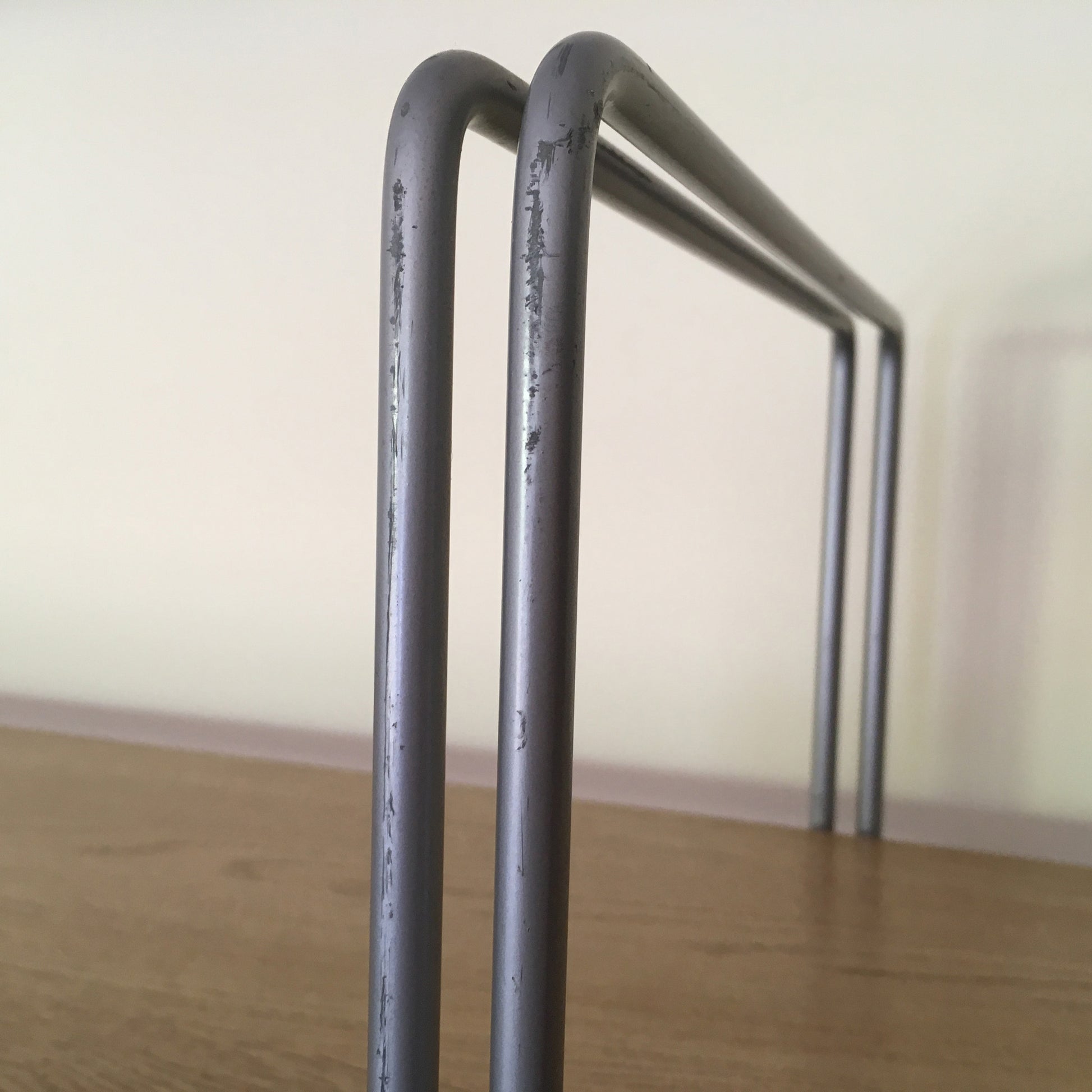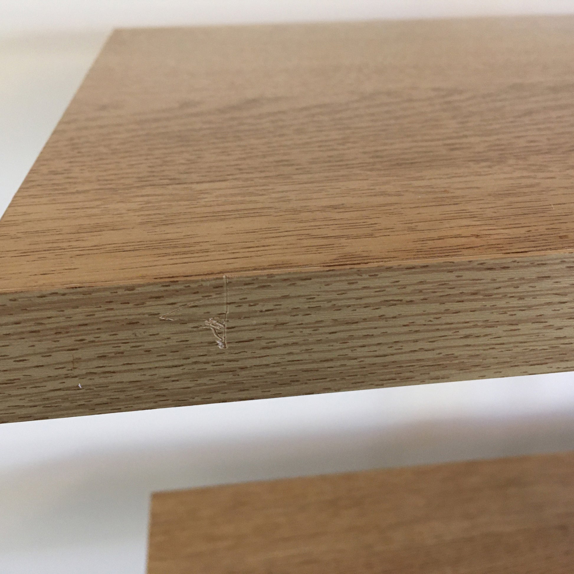 Two areas of minor swelling of oak veneer (See photos) and some minor chips and scratches to veneer. Some scuff marks/scratches across the length of the steel frame as shown in photos. One side of the steel supports has slightly bent metal.