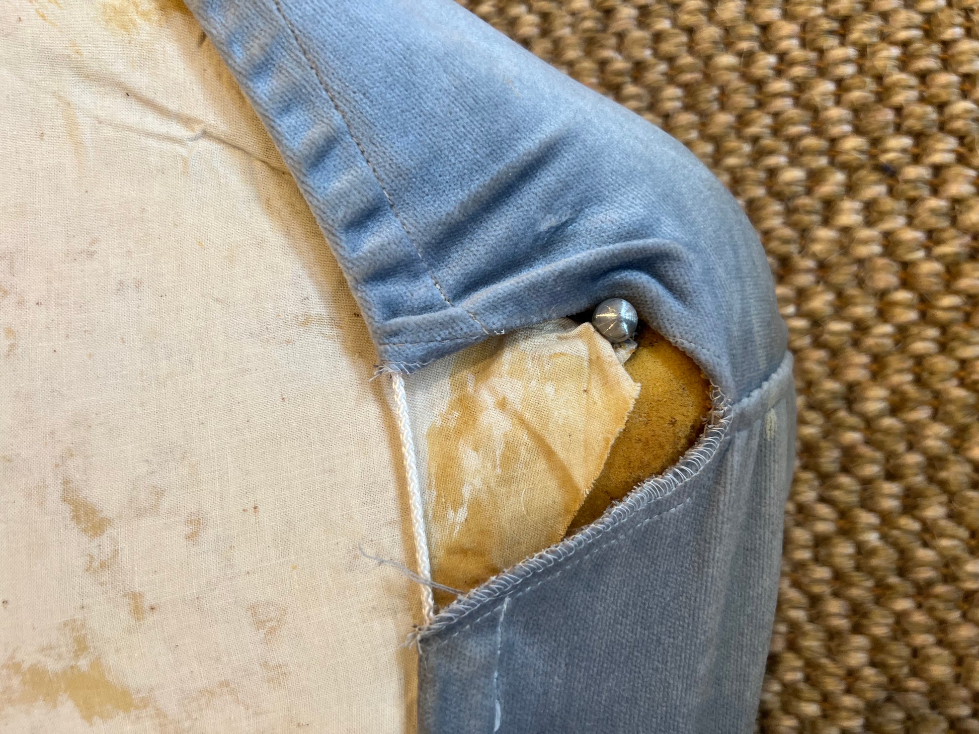Original Velvet fabric. It has some signs of wear from age and use. Please refer to photos as they document the condition and areas of damage. Generally in good condition.