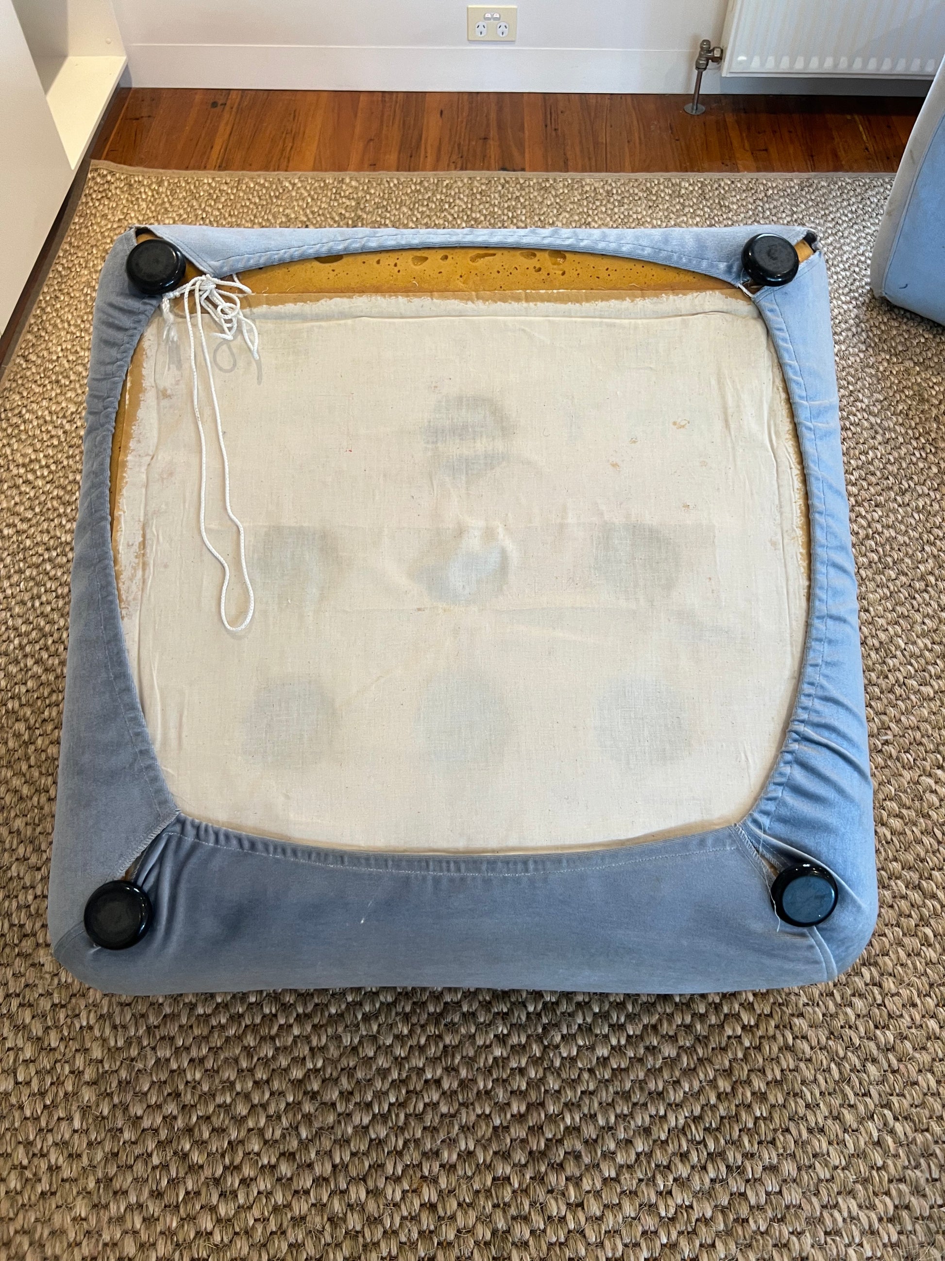 Features original luxe velvet powder blue upholstery that has been kept in superb condition.
