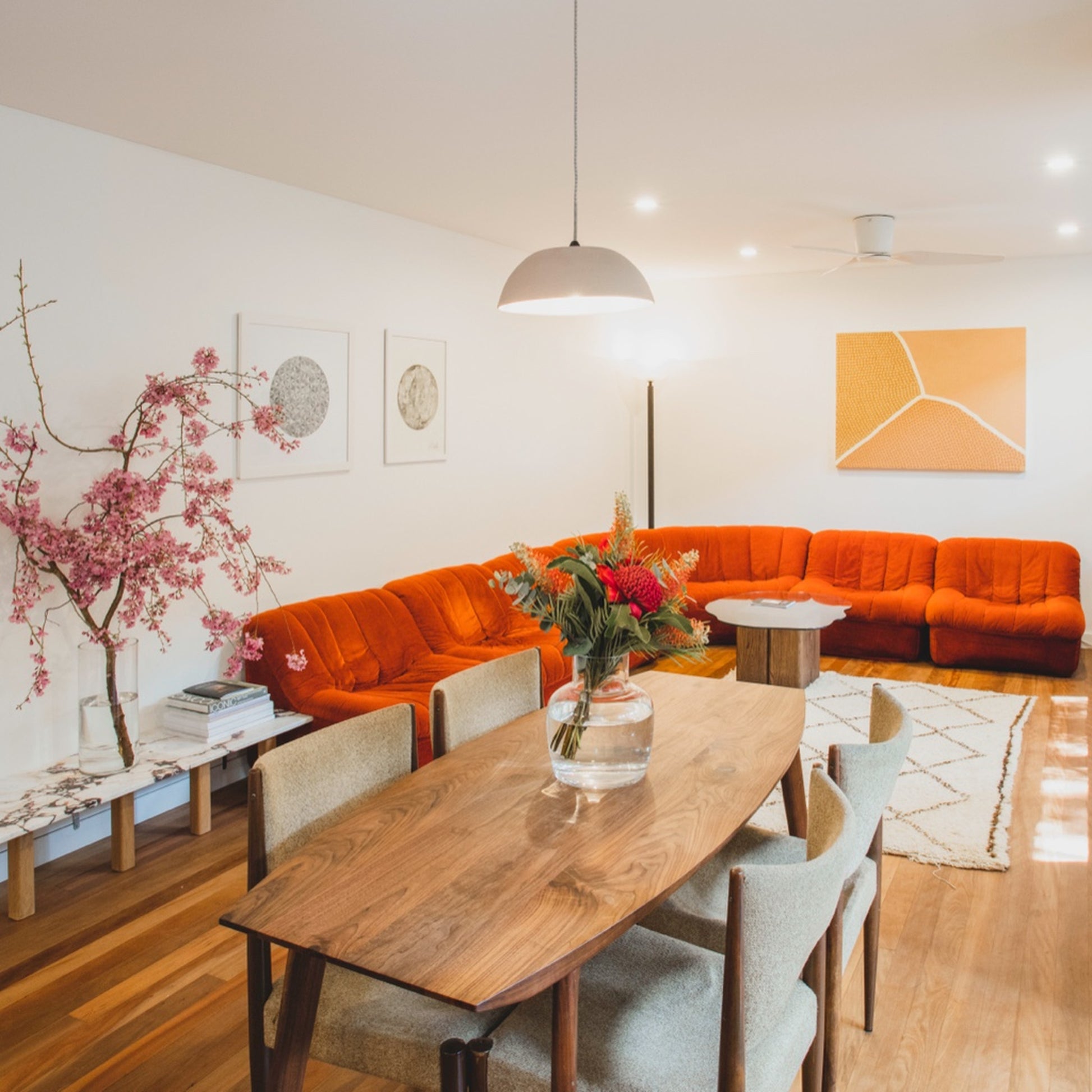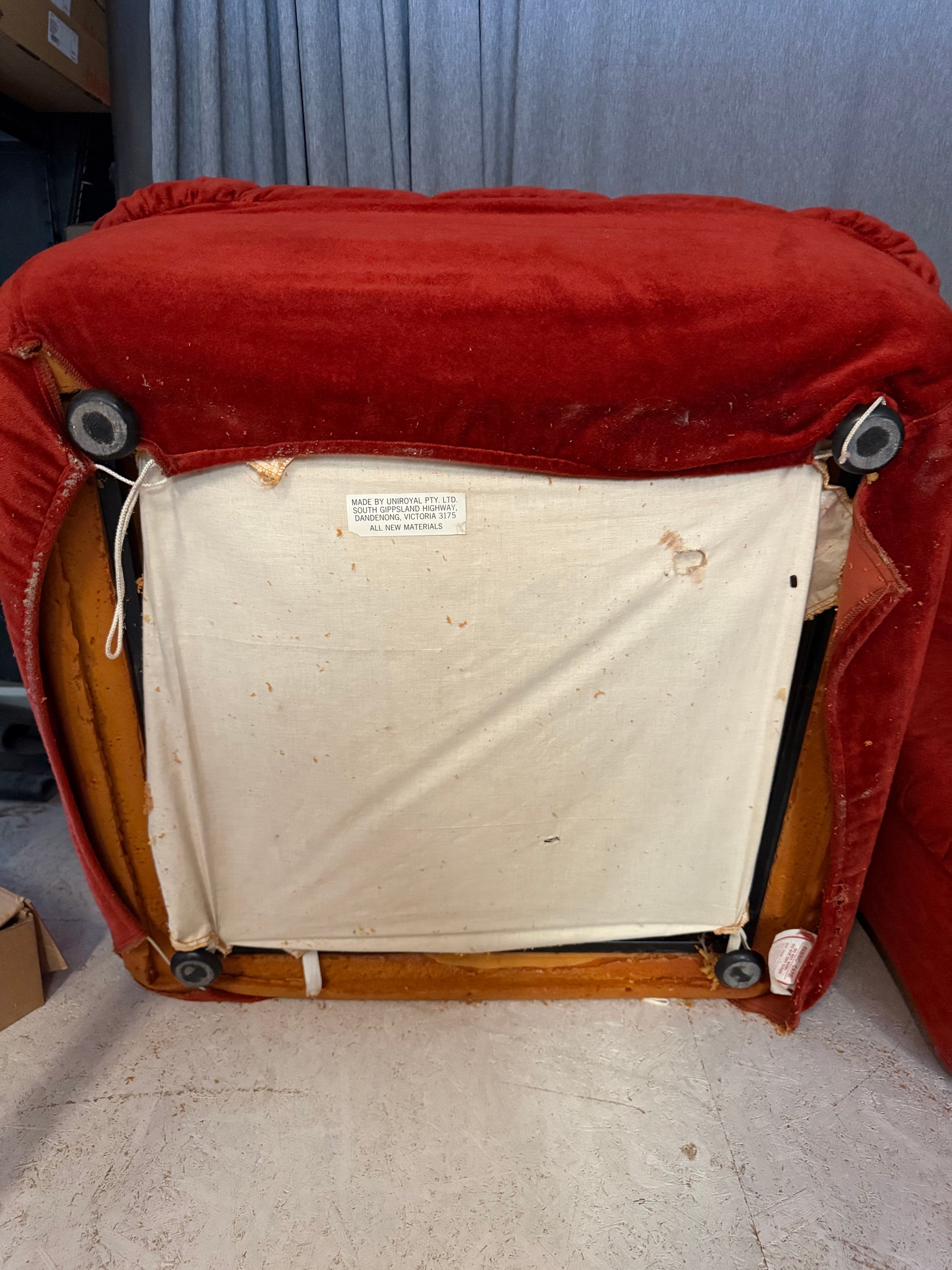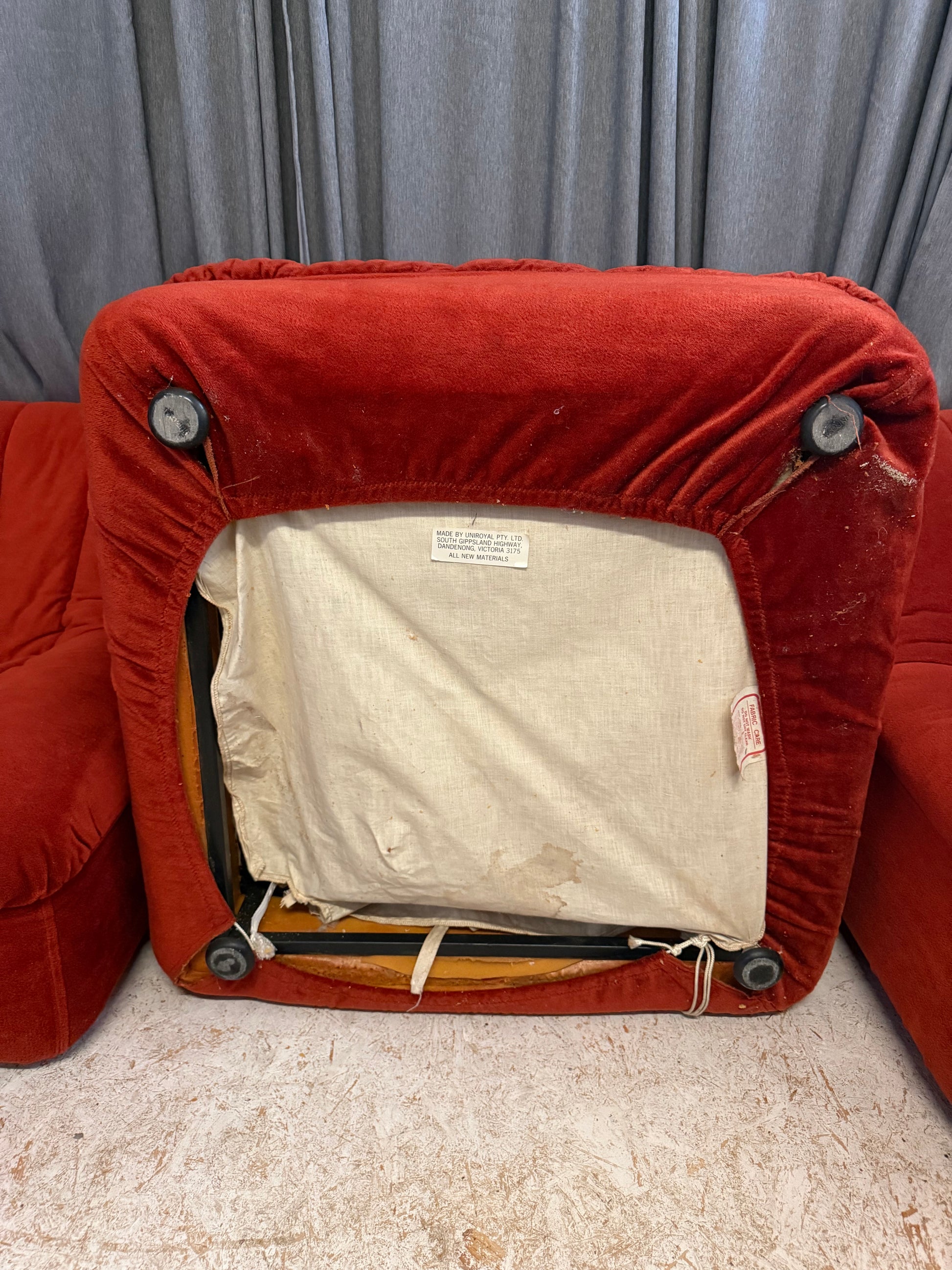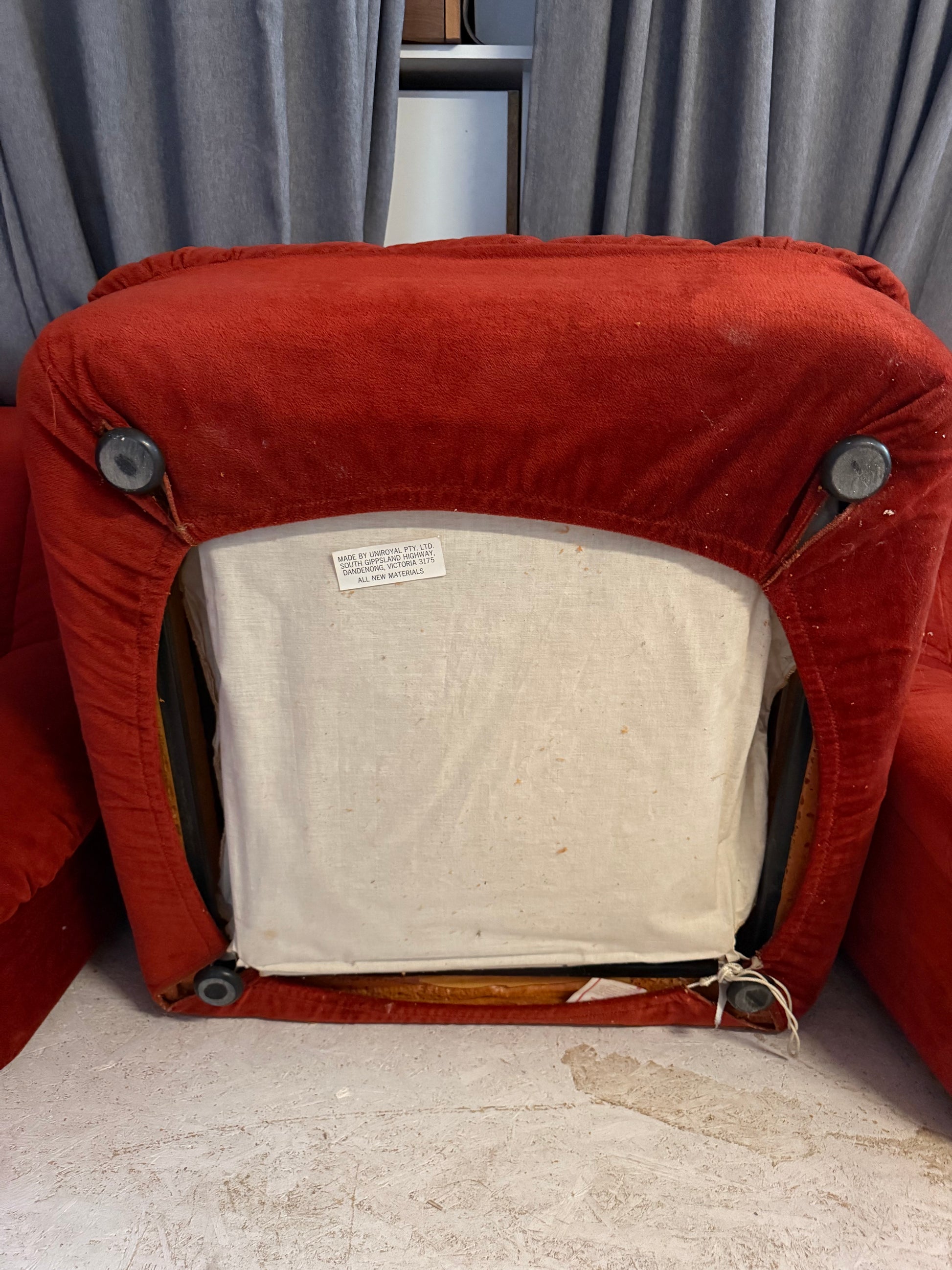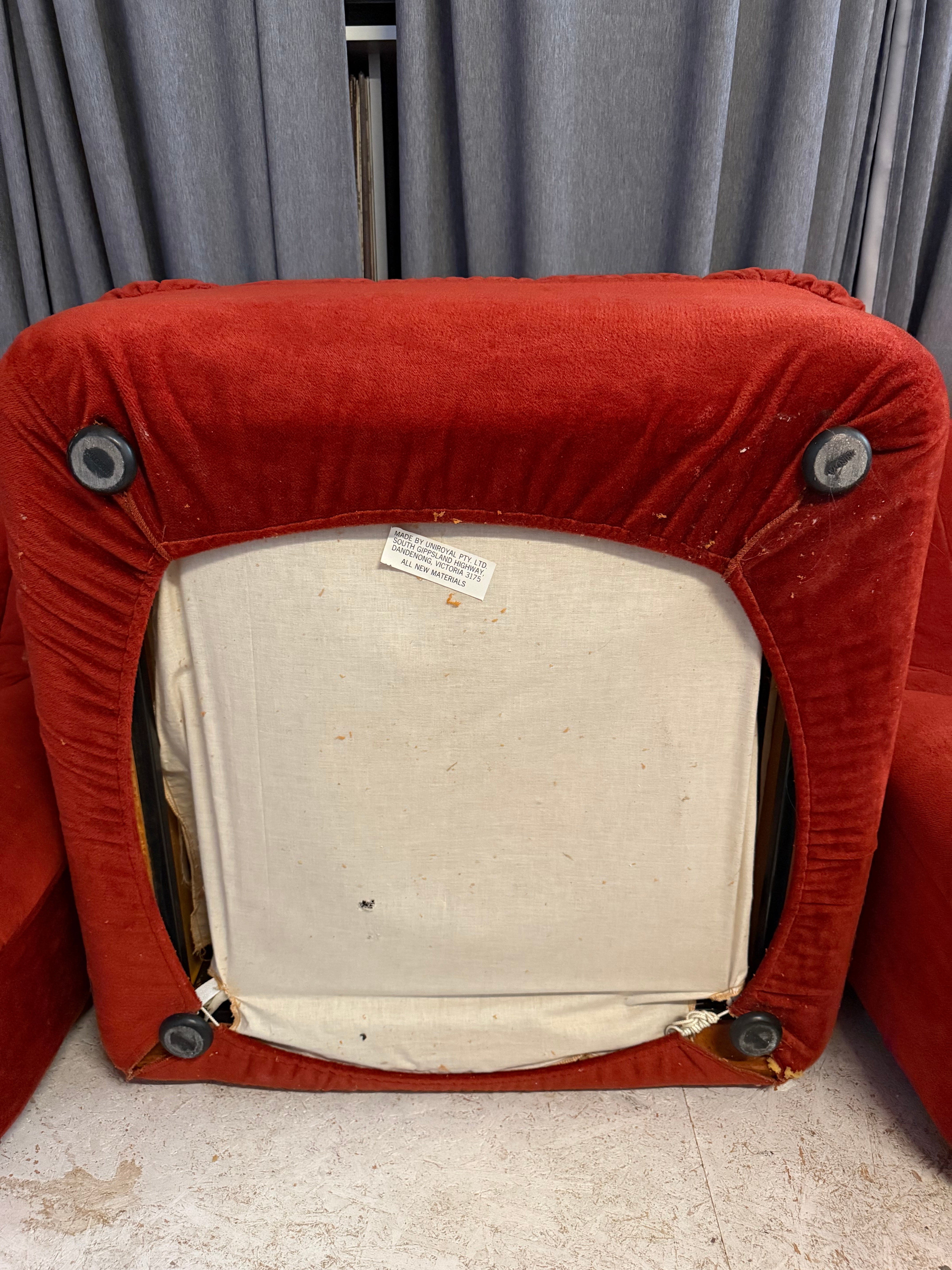 Upholstered in rich burnt-orange velvet, the piece makes a bold statement while remaining timeless. A highly collectible example of mid-century Australian design by one of the country's most influential designers.