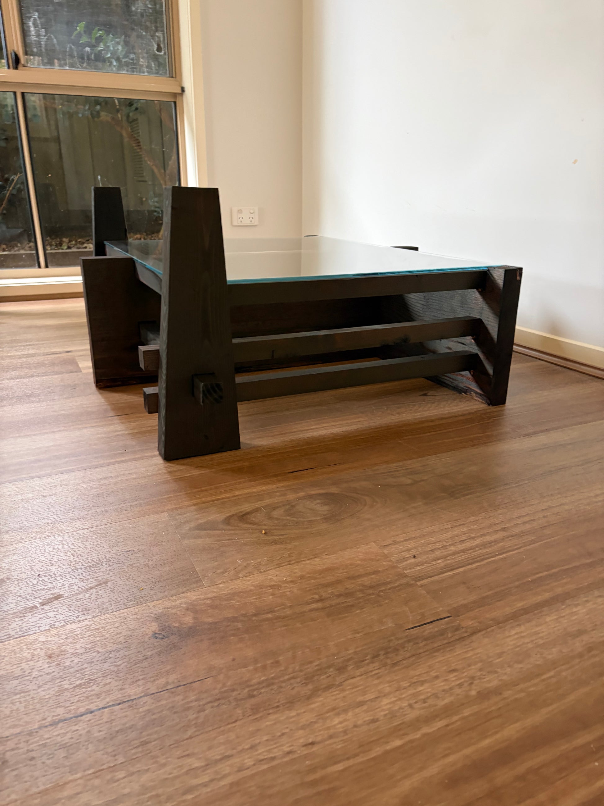Handmade Timber Coffee Table with Glass Top