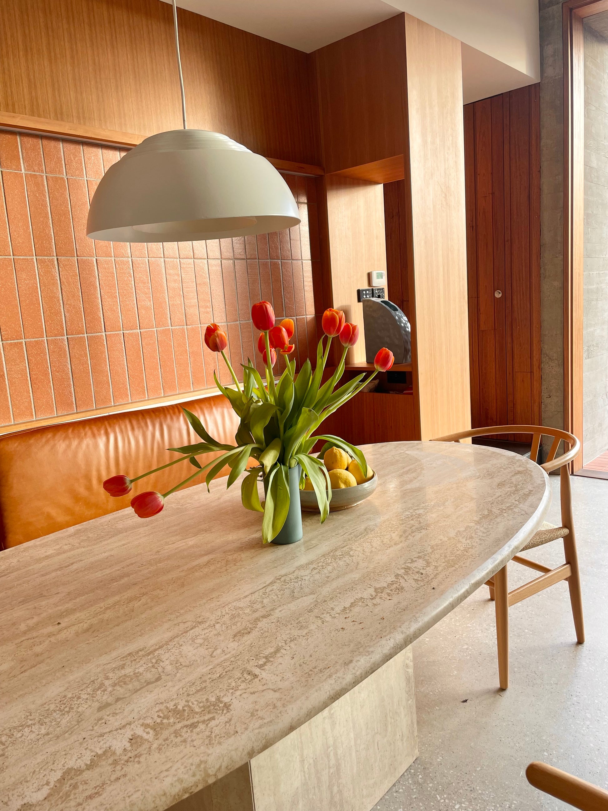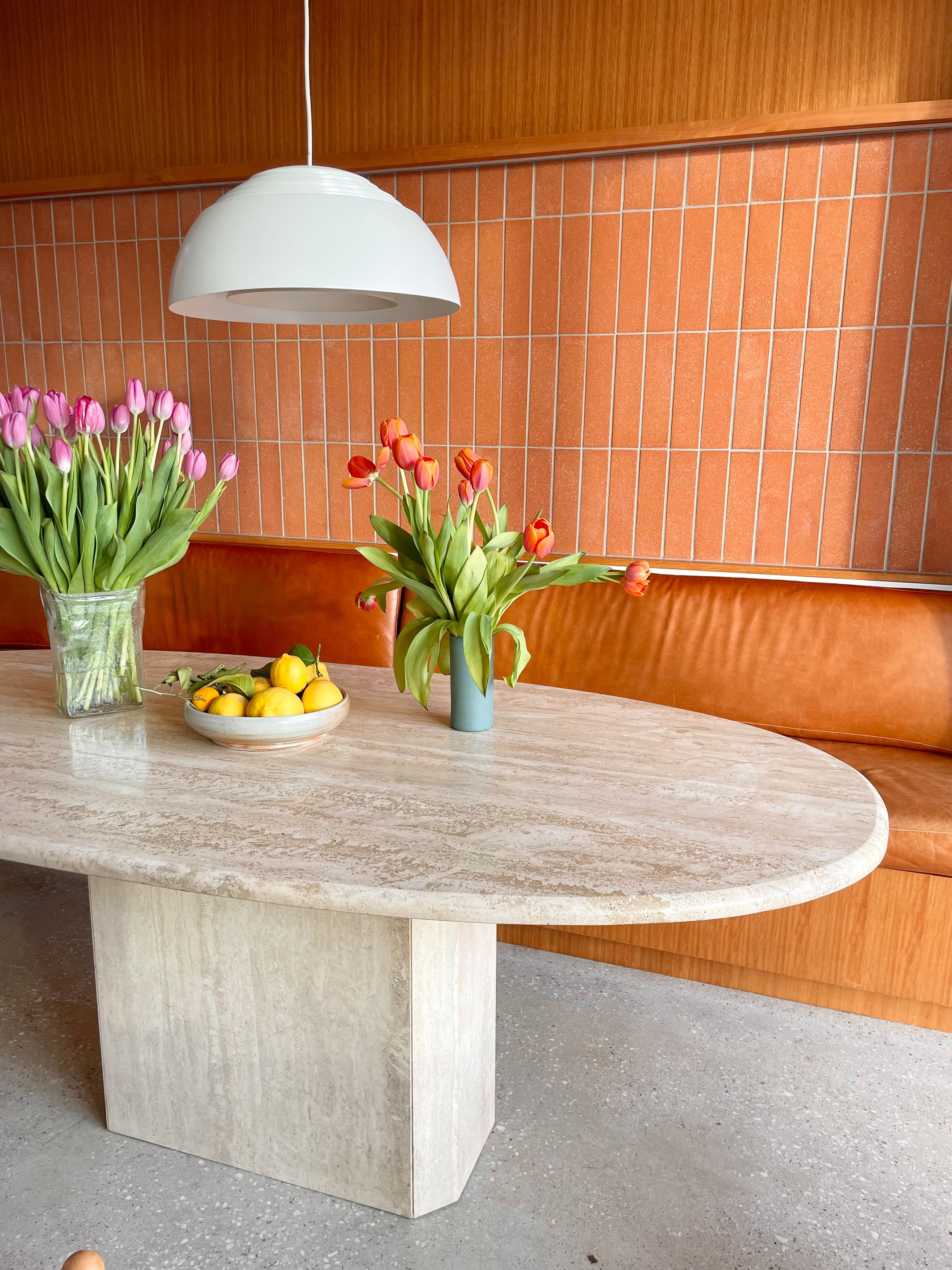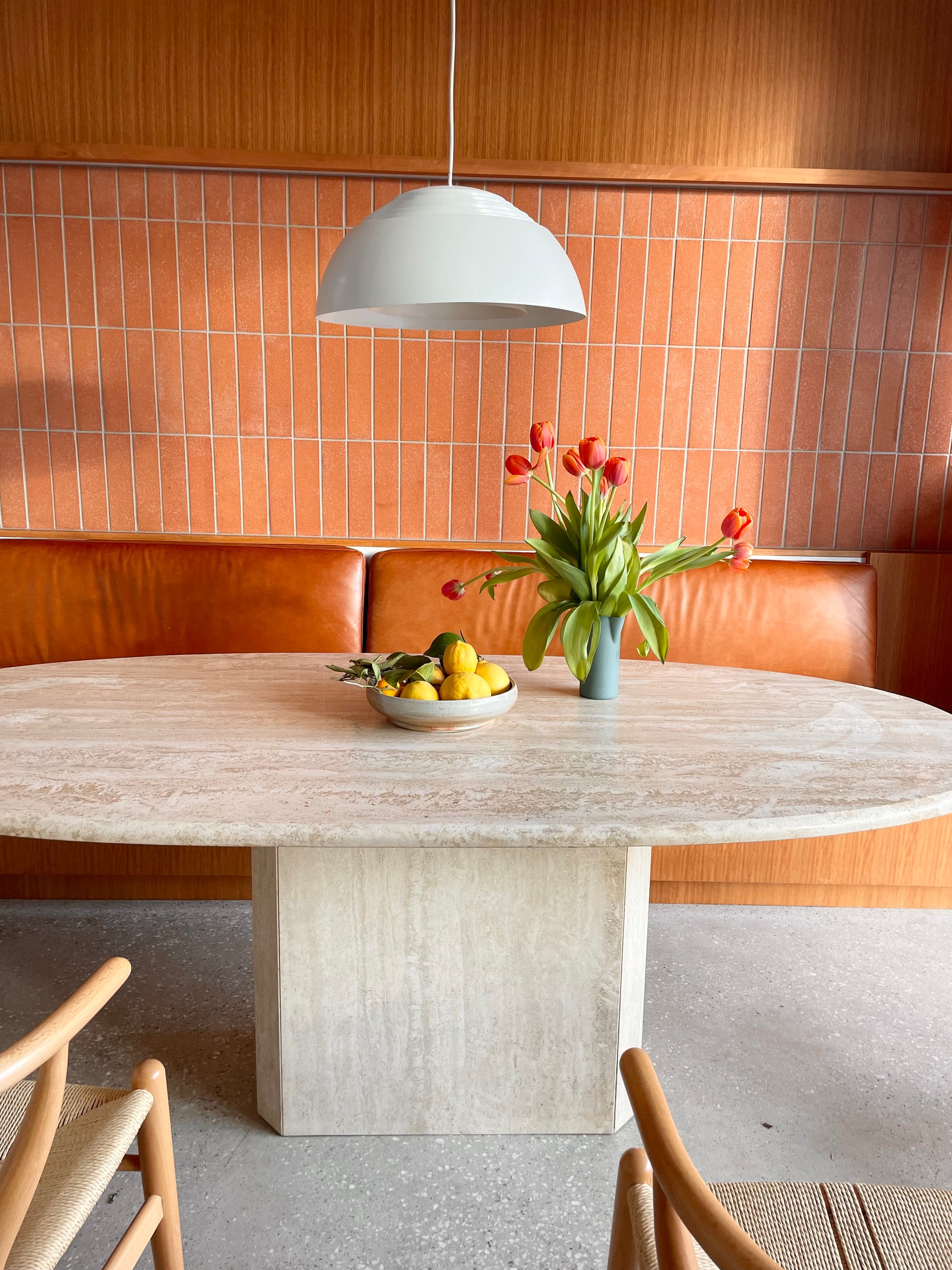 Beautiful thick slab of filled travertine. Six - Eight seater table.